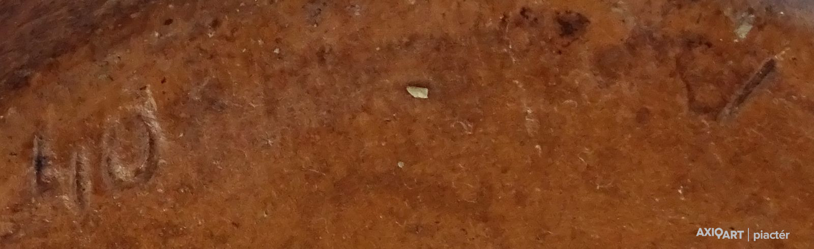 [1T107/Z029] 25% ÁRENGEDMÉNY MINDEN TERMÉKÜNKRE Dec. 14-ig Régi, szép állapotú kézzel festett három darab orientalista terrakotta kisplasztika, mellszobor. - 1 darab sárga ruhás, turbános szerecsen férfi büszt (20 x 12 x 23 cm) Vállán jelzés: IFJ. VASTAGH GY. - 1 darab kék ruhás, turbános szerecsen férfi büszt (17.5 x 15 x 23.5 cm) Vállán repedés, lásd fotó. - 1 darab barna ruhás szerecsen férfi büszt (19 x 15 x 23.5 cm) Vállán pecsételt és kopottas jelzés: IFJ. VASTAGH GY. ALGIR 1898 Súly: 3.945 kg Vastagh György (szobrász) Vastagh György Született 1868. szeptember 18. Kolozsvár Elhunyt 1946. június 3. (77 évesen) Budapest Állampolgársága magyar Nemzetisége magyar Házastársa Benczúr Olga Gyermekei Vastagh Éva Vastagh László Szülei Vastagh György Foglalkozása szobrász Sírhelye Fiumei Úti Sírkert (37/1-1-32) A Wikimédia Commons tartalmaz Vastagh György témájú médiaállományokat. Sablon • Wikidata • Segítség Ifjabb alsó-torjai Vastagh György (Kolozsvár, 1868. szeptember 18. – Budapest, 1946. június 3.) magyar szobrászművész. Az erdélyi Háromszékről származó Vastagh művészcsalád különböző műfajokban alkotó tagjai három generáción keresztül, százhúsz éven át voltak jelen a 19-20. század magyar képzőművészetében.  Családja Alsó-torjai székely lófő eredetű családból származott. Ősei 1661 körül a tatárdúlást követő pestis elől menekülve Szegeden telepedtek le, az ottani anyakönyvekben először 1667-ben fordul elő nevük. Nagyapja Vastagh János szegedi hajósgazda, apja id. Vastagh György festőművész, édesanyja Schell Jozefin, bátyja Vastagh Béla jogász és Vastagh Géza festőművész, sógora Kenyeres Balázs orvosprofesszor. Ifjabb Vastagh György 1900-ban kötött házasságot Benczúr Gyula lányával, Benczúr Olga képző- és iparművésszel. Három gyermekük született. Lánya, Vastagh Éva és fia, Vastagh László szobrászművészek voltak, kisebbik fia, Pál (közlekedési mérnök) a második világháborúban halt meg.  Tanulmányai Első mestere a nála mindössze egy évtizeddel idősebb Zala György volt. 1889 és 1891 között Münchenben a Képzőművészeti Akadémián tanult, előbb rajzot Gabriel Hacklnál, majd mintázást Syrius Eberlénél. 1893-ban tanulmányúton járt Párizsban, ahol Emmanuel Fremiet és Alexandre Falguere  szobrászokkal állt kapcsolatban. 1898-ban  négy hónapot töltött Algériában és Tunéziában, állami ösztöndíjjal ott tevékenykedő bátyjához, Gézához csatlakozva. Itt mintázta arab és néger portréit, továbbá egy teveszobrot.  Művészi pályafutása Tevehajcsár, 1893. Ifj. Vastagh György műtermének részlete az Árpád szoborral Első nyilvánosan felállított munkája a Pápai honvédemlék (1889), az ihászi csatát idéző bronz reliefjével és oszlop tetején szétterjesztett szárnyú turulszobrával. Részt vett a Kolozsvár város által kiírt Mátyás király szoborpályázaton, melyet Fadrusz János nyert meg. A Millenniumi kiállításra ötven tenyészállatszobor készítésével bízta meg a Földművelési Minisztérium. Ezeket az állami ménesbirtokokon – Bábolna, Kisbér, Mezőhegyes, Fogaras – mintázta. Az 1900-as párizsi világkiállításra a minisztériumtól újabb megrendelést kapott, a legkiválóbb nagy- és kistenyésztők állatainak megmintázását. Szobrait aranyéremmel jutalmazták. 1902-ben avatták fel a Budavári Palota területén, a lovarda előtt felállított másfélszeres életnagyságú Csikós szobrát, egyik főművét. Talapzatát a palota építésze Hauszmann Alajos tervezte. A II. világháborúban megsérült szobor restaurálás után 1983-ban került jelenlegi helyére, a Magyar Nemzeti Galéria B épülete előtti Hunyadi-udvarra. Fél életnagyságú változatát Párizsban a világkiállításon aranyéremmel díjazták. A londoni British Museum is vásárolt állatszobraiból, ezek egy része ma a Londoni Természettudományi Múzeum (Natural History Museum) gyűjteményében található. 1901-ben kapott megbízást Bethlen Gábor szobrának elkészítésére, melyet 1903-ban a Köröndön állítottak fel, ma a Hősök terén a millenniumi emlékmű egyik alakja. Ez időszakban az Állatorvosi Főiskolán lóanatómiai tanulmányokat készített grafikában és plasztikában, ezeket Zimmermann Ágoston szemléltető tananyagként alkalmazta. Ekkor készültek anatómiai tanulmányai Kincsemről, ott őrzött csontváza alapján. A nemzetközi vadászati kiállításon (1910, Bécs) kutyaszobraival aratott sikert. Részt vett a budapesti Bazilika szobrászati díszítésében (1905), a budapesti Széchenyi gyógyfürdő kupolacsarnokának egyik tritónja (1909–1913) is az ő nevéhez fűződik. II. Rákóczi Ferenc lovas szobrát Szegeden, a Széchenyi téren állították fel 1912-ben. Árpád fejedelem lovas szobrának felállítása Munkácson az I. világháború miatt meghiúsult, kisplasztikai változata a Magyar Mezőgazdasági Múzeumban látható. A múzeum felkérésére mintázta a Négyesfogat szoborcsoportot Dőry Vilmosné leperdi birtokán 1912-ben, a Négyökrös szántást Mezőhegyesen 1913-ban, továbbá szintén a Dőry-birtokon, a Mezőgazdasági kiállításon díjnyertes Cepedli tehén szobrát 1925-ben. Ez évben készült Pázmány Péter emlékszobra a nevét viselő tudományegyetem számára (központi épület), ma Piliscsabán a katolikus egyetemen található. Lourdes-i Mária szoborpályázaton nyertes alkotása (1925) a Gellért-hegyi Sziklatemplomban állt (eltűnt). A létrehozandó kairói Mezőgazdasági Múzeum számára 1931-32-ben közel 50 egyiptomi juh-, szarvasmarha- és lószobrot mintázott fiával, Lászlóval együtt. Görgey Artúr 
