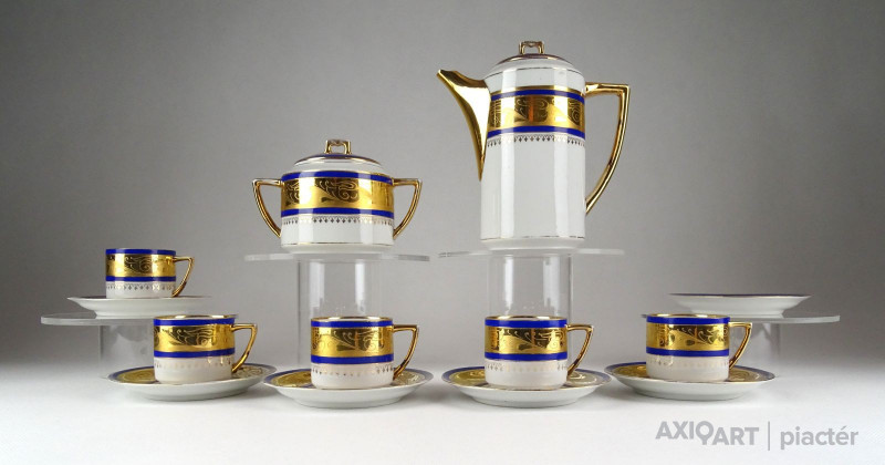 Régi, hibátlan állapotú, gazdagon aranyozott, impozáns porcelán kávéskészlet.