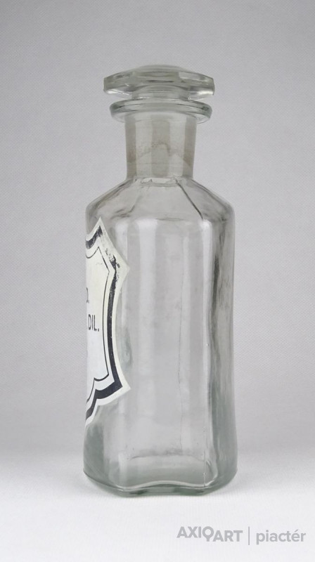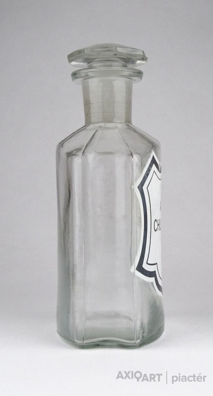 Régi, szép állapotú, áttetsző gyógyszertári üveg, patikaüveg.
