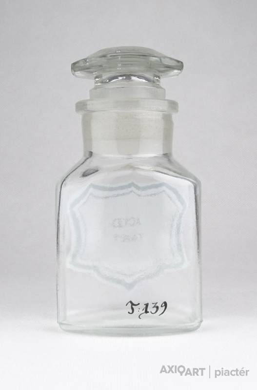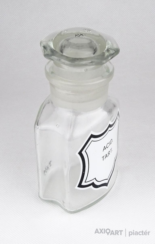 [0Y773/Z047] Régi, szép állapotú, áttetsző gyógyszertári üveg, patikaüveg. Oldalán felirat: ACID. TART. Magasság: 12 cm Szélesség: 6 cm Súly: 0.21 kg   Magassága 19 cm, átmérője 7 cm. Súlya 437 g.