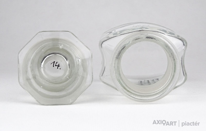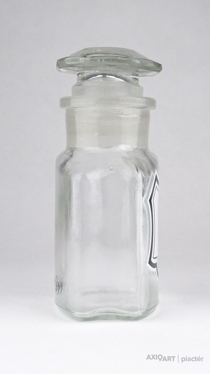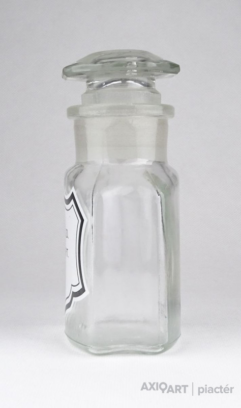 Régi, szép állapotú, áttetsző gyógyszertári üveg, patikaüveg.