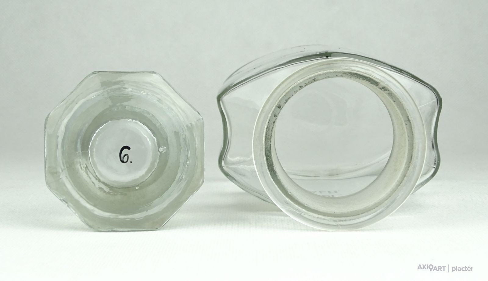 Régi, szép állapotú, áttetsző gyógyszertári üveg, patikaüveg.