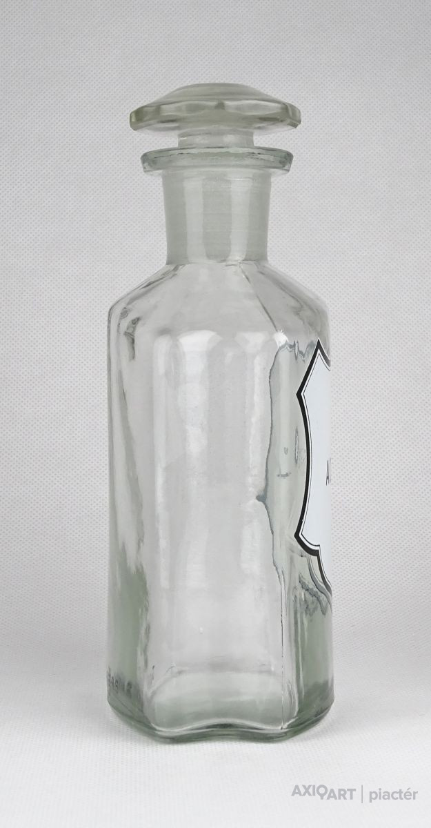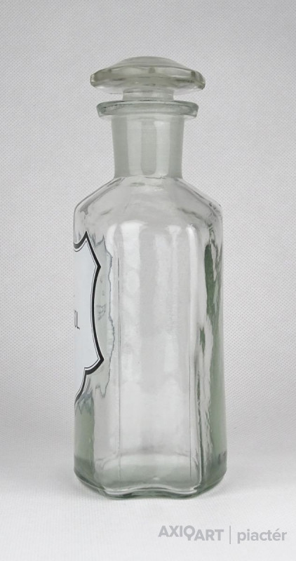Régi, szép állapotú, áttetsző gyógyszertári üveg, patikaüveg.