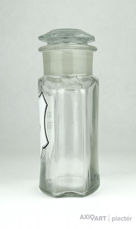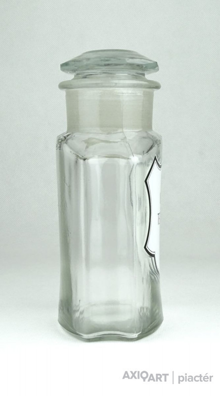 Régi, szép állapotú, áttetsző gyógyszertári üveg, patikaüveg.
