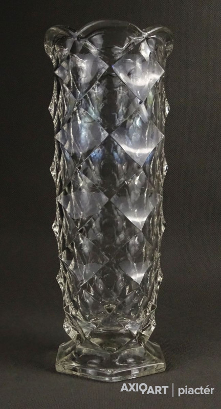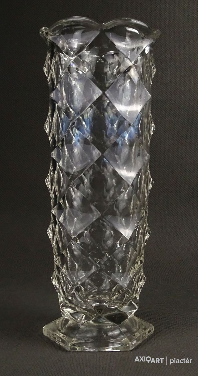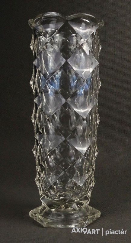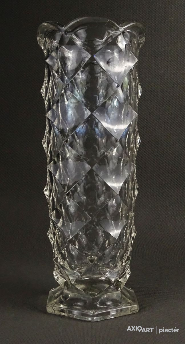 [1P747/X326] Régi hibátlan állapotú gyönyörű art deco üveg váza, formába préselt üveg váza, díszváza, virágváza. Magasság: 25 cm Szélesség: 9.5 cm Súly: 1.005 kg