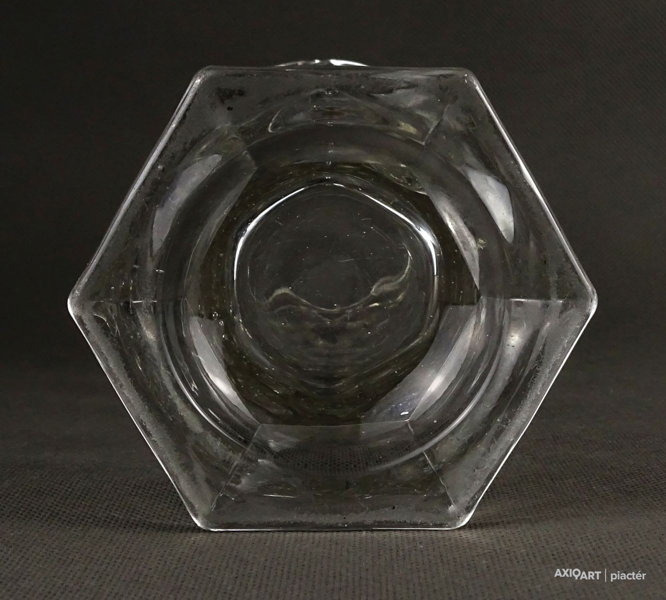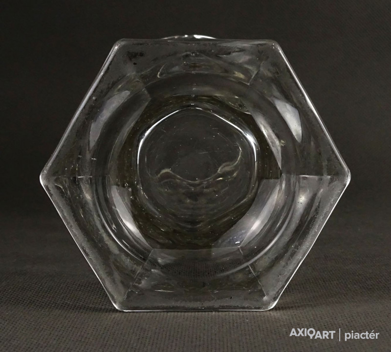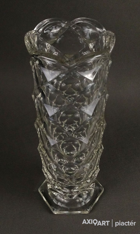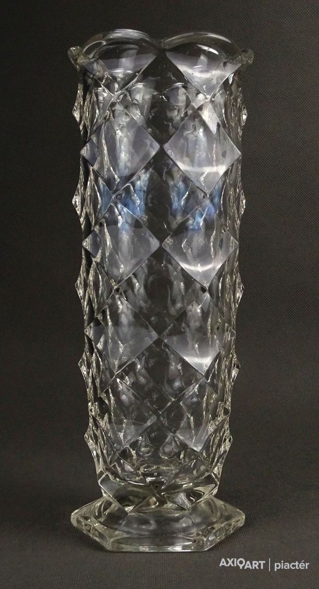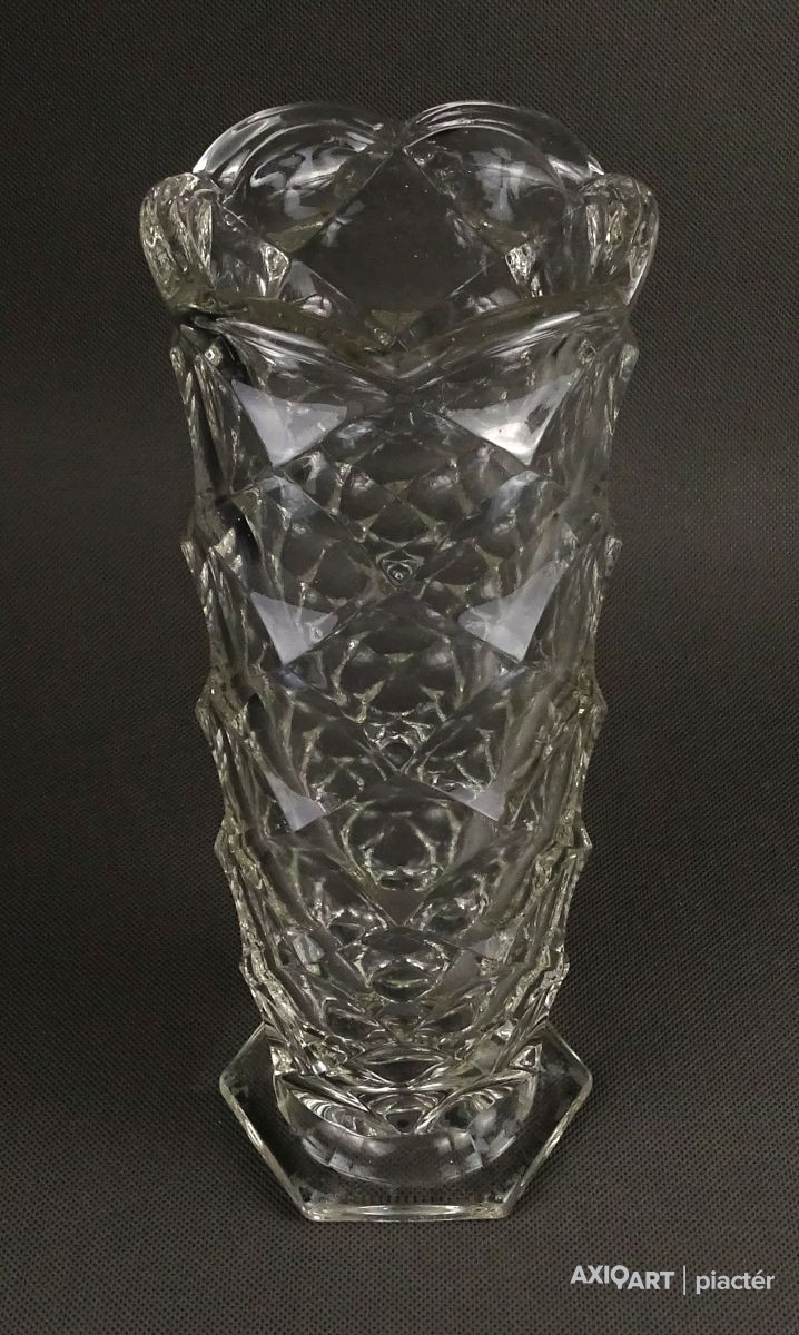 Régi hibátlan állapotú gyönyörű art deco üveg váza, formába préselt üveg váza, díszváza, virágváza.