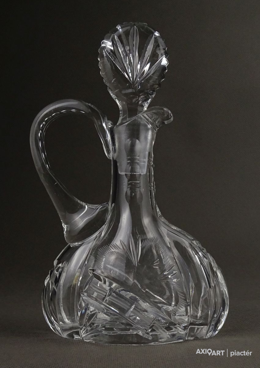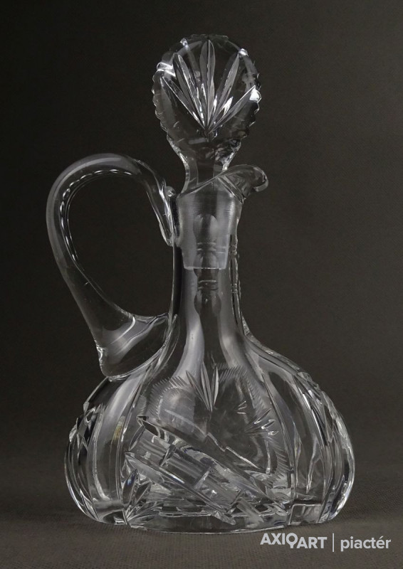 Hibátlan állapotú, ecetes vagy olajos üveg kiöntő csiszolt üveg dugóval.