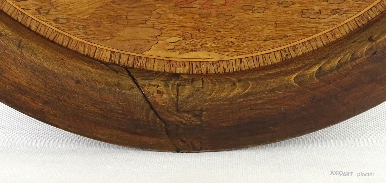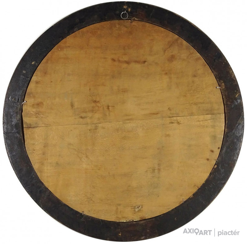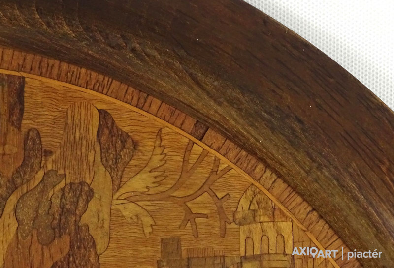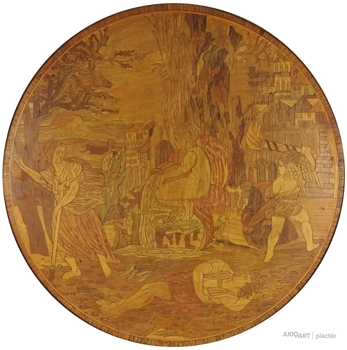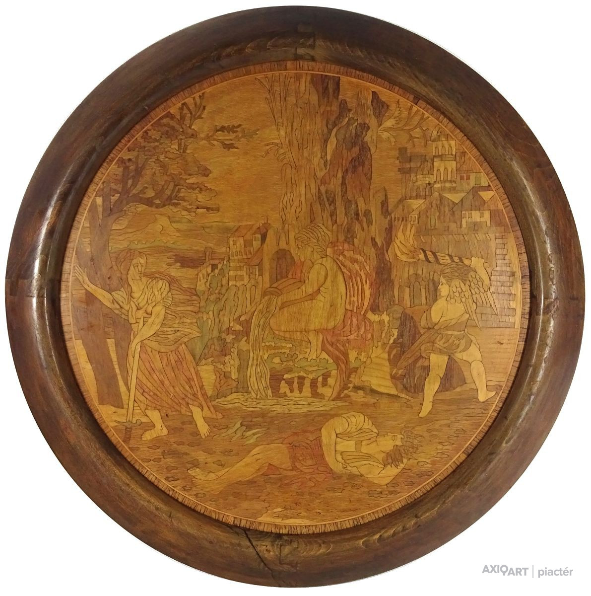 Régi gyönyörű mitológiai intarziakép kerek keretben 48 cm