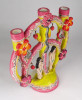 Régi gyönyörű naivista háromágú gipsz gyertyartó 21.5 cm