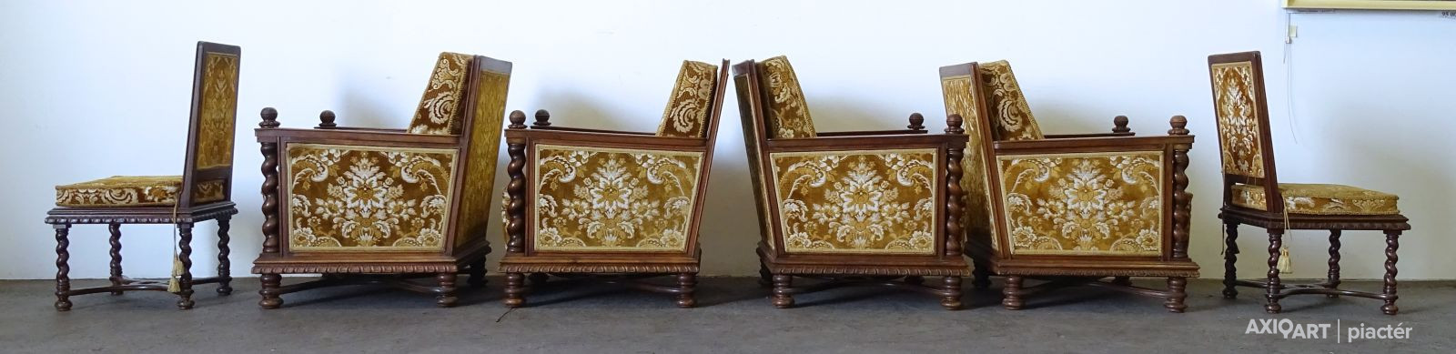 Régi hat darabos faragott csavart oszlopos szalongarnitúra