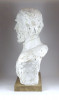 [1O467/Z033] Szép állapotú extra nagy méretű gipsz szobor, mellszobor. Hátoldalán jelzés felirat: EROS DES PRAXITELES ORIGINALIN ROM C. VANNIS NACHF. Magasság: 52 cm Szélesség: 34 cm Súly: 5.39 kg Eros Eros A szerelem, a vágy, a vágy és a szex Istene Ősisten és a Szeretet megszemélyesítője Az Erotes tagja Az Eros Farnese , egy pompeji márvány, amelyet Praxiteles Thespiae kolosszális Erószának másolatának tartottak A szerelem és a szex görög istene . Római megfelelője Cupido volt ("vágy").  A legkorábbi beszámolókban ősisten , míg a későbbi beszámolókban Aphrodité és Arész egyik gyermekeként írják le , és néhány testvérével együtt az Erotek egyike volt , a szárnyas szerelmi istenek csoportja. Általában jóképű fiatalemberként mutatják be, bár bizonyos külsőségekben egy fiatalkorú fiú, tele huncutsággal, aki mindig édesanyja társaságában van. Mindkét esetben szárnyas, és magán viseli jellegzetes íját és nyílvesszőit, amelyekkel mind a halandókat, mind a halhatatlan isteneket szerelmessé teszi, általában Aphrodité irányítása alatt. Szerepe a mítoszokban többnyire kiegészítő; gyakran megjelenik Aphrodité és a többi szerelmi isten jelenlétében, és gyakran katalizátorként hat az emberek szerelembe vételére, de kevés saját mitológiája van; a legnagyobb kivétel ez alól az Eros és Psyche mítosza , a történet arról, hogyan találkozott a feleségével és beleszeretett. Eros, vagy inkább római megfelelője Cupido, népszerű maradt a középkorban és a reneszánszban . Ikonográfiája és szerepe a keresztény hagyományon túl az Ámor ábrázolására is hatással volt. Ez az Eros/Cupid ismétlődés a Valentin-nap fő ikonjává és szimbólumává vált .  Etimológia  A görög ἔρως , jelentése 'vágy', a ἔραμαι 'vágyni, szeretni' szóból származik , bizonytalan etimológiájú. RSP Beekes pregörög eredetre utal .  Kultusz és ábrázolás  Erósz az ókori görög forrásokban többféle álarc alatt jelenik meg. A legkorábbi forrásokban (a kozmogóniákban , a legkorábbi filozófusokban és a misztériumvallásokra utaló szövegekben) a kozmosz létrejöttében részt vevő ősistenek egyike . A későbbi források azonban Erost Aphrodité fiaként ábrázolják, akinek huncut beavatkozásai az istenek és halandók ügyeibe szerelmi kötelékek kialakulását idézik elő, gyakran törvénytelenül. Végső soron a későbbi szatirikus költők bekötött szemű gyermekként, a köpcös reneszánsz Ámor előfutáraként szerepelnek, míg a korai görög költészetben és művészetben Erost fiatal felnőtt férfiként, aki megtestesíti a szexuális hatalmat, és mély művészként ábrázolták.  A preklasszikus Görögországban létezett Eros kultusza, de ez sokkal kevésbé volt fontos, mint Aphrodité. A késő ókorban azonban Erost termékenységi kultusz imádta Thespiae -ban . Athénban nagyon népszerű kultuszt osztott meg Aphroditéval, és minden hónap negyedik napja szent volt számára (Héraklész, Hermész és Aphrodité is osztotta).  Eros az Eroták közé tartozott , más figurákkal, például Himerosszal és Pothosszal együtt , akiket olykor a férfiak közötti homoszexuális szerelem pártfogóinak tartanak. Erósz része egy istenhármasnak is, amely szerepet játszott a homoerotikus kapcsolatokban, Héraklész és Hermész mellett , akik a szépség (és a hűség), az erő és az ékesszólás tulajdonságait ruházták fel a férfi szerelmeseknek.  A thespiák az Erotídiát ( ógörögül : Ἐρωτίδεια ) ünnepelték, ami Erósz ünnepeit jelenti.  Neki volt a Klêidouchos (Κλειδοῦχος) jelzője, ami a kulcsok kézben tartását/hordását jelenti, mert ő tartotta a szívek kulcsát.  A modern csillagászatban a 433 Eros aszteroida róla kapta a nevét.  Mitológia  Ősisten  Hésziodosz Theogóniája (Kr. e. 700) szerint az egyik legősibb görög forrás, Erosz (a szerelem istene) volt a negyedik isten, aki létrejött, a Káosz , Gaia ( a Föld) után. Tartarus (a szakadék).  Homérosz nem említi Erost. Parmenidész (Kr. e. 400 körül), a szókratész előtti filozófusok egyike azonban Erost teszi az istenek közül elsőként, aki létrejött.  Az orfikus és az eleuszinuszi misztériumok Erost nagyon eredeti istenként mutatták be, de nem egészen ősi istenként, mivel Éj ( Nyx ) gyermeke volt .  Arisztophanész (Kr. e. 400 körül), akit az orfizmus befolyásolt , Erósz születéséről mesél: Kezdetben csak Káosz, Éjszaka, sötét Erebus és mély Tartarus volt. A Föld, a levegő és az ég nem létezett. Először is, a feketeszárnyú Éjszaka csíramentes tojást rakott Erebus végtelen mélységének kebelébe, s ebből fakadt a hosszú korok forradalma után a kecses Eros csillogó aranyszárnyaival, sebes, mint a vihar forgószele. A mély Tartaroszban párosodott a sötét káosszal, szárnyas volt, mint ő, és így kikelt a mi fajunk, amely elsőként látta meg a fényt.  Egyes változatokban az Erost tartalmazó Orphic Egg-et Chronos hozta létre , és Eros az, aki lányaként szülte Nyxet , és vette hitvesének. Erost "Protogonos"-nak nevezték, ami "elsőszülöttet" jelent, mert ő volt az első halhatatlanok közül, akit az ember megfoganhatott, és minden más lény alkotójaként és a világegyetem első uralkodójaként tartották számon. Nyx szülte Erosnak Gaia és Ouranos isteneket . Eros átadja hatalmi jogarát Nyxnek , aki aztán Ouranosnak adja át. Az ősi Erost Phanesnek ("megvilágosodott"), Erikepaiosznak is nevezték('hatalom'), Metis ('gondolat') és Dionüszosz. Zeuszról azt mondták, hogy lenyelte Phanest (Erost), és magába szívta teremtő erejét, és újjá alakította a világot, így Zeusz akko