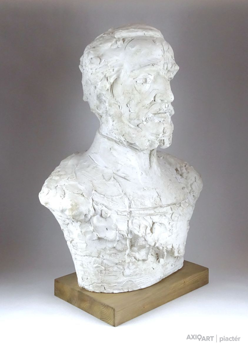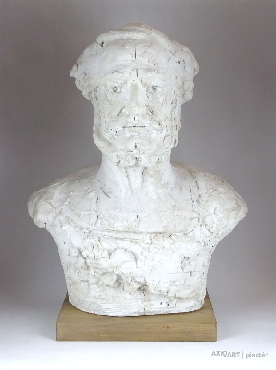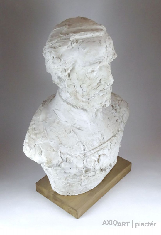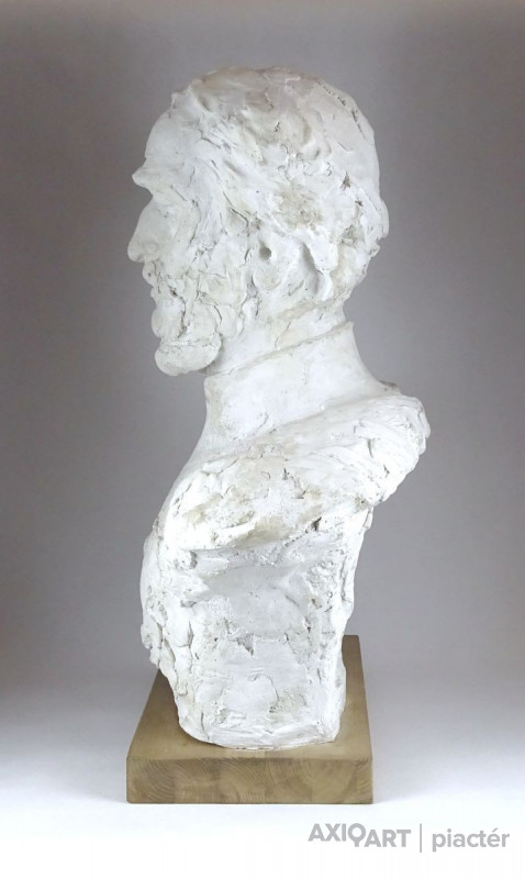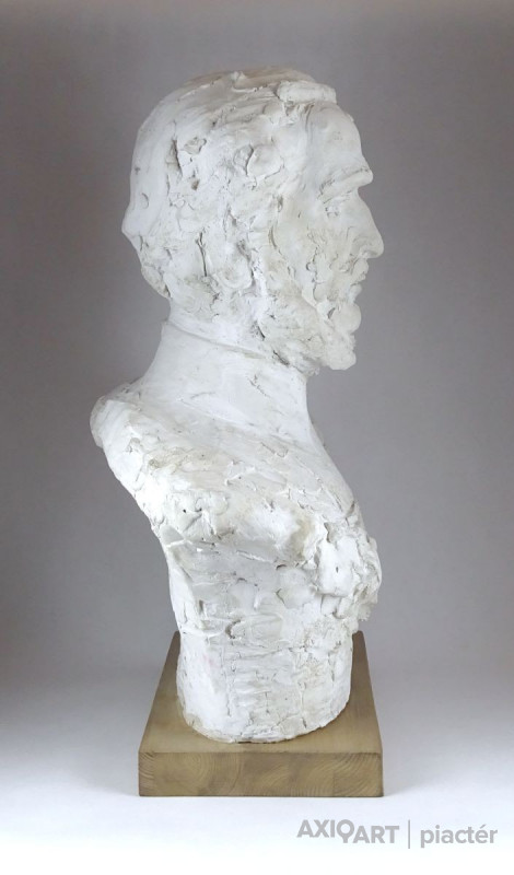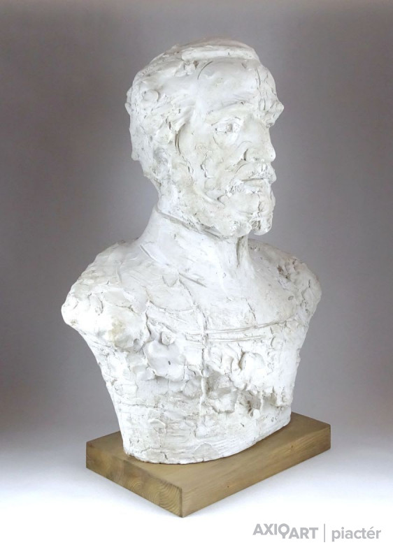 Régi, szép állapotú, extra nagyméretű, hatalmas gipsz Széchenyi büszt, mellszobor. Fa talapzaton áll.