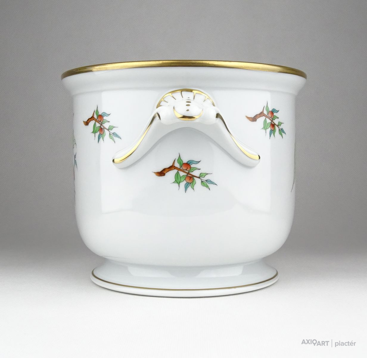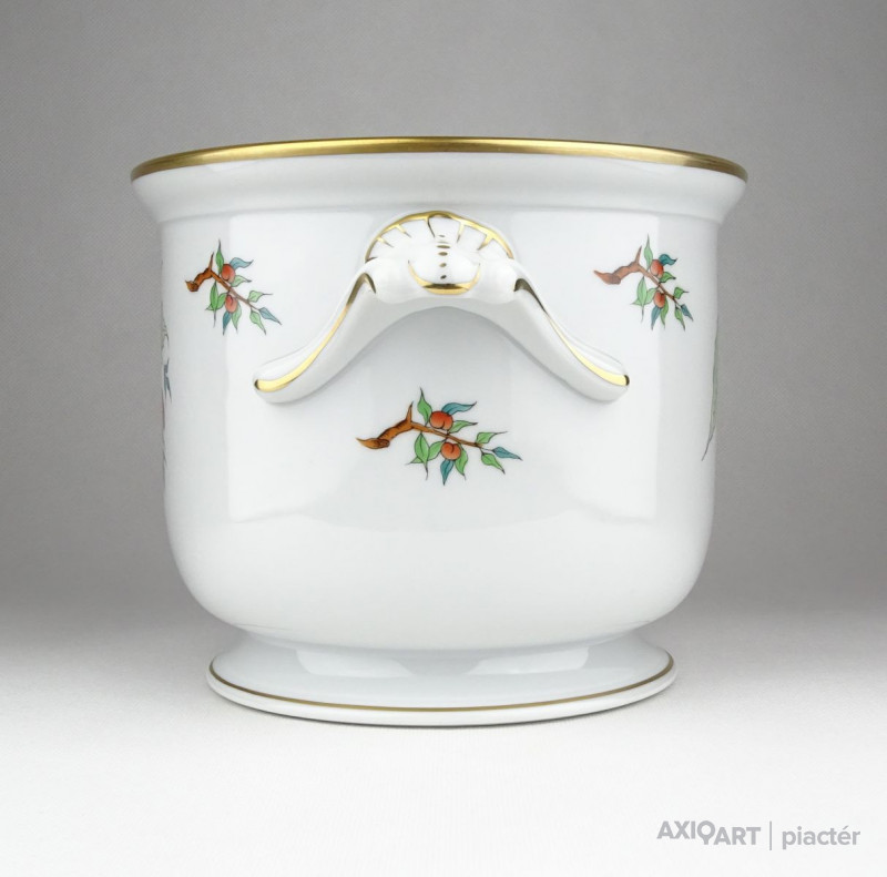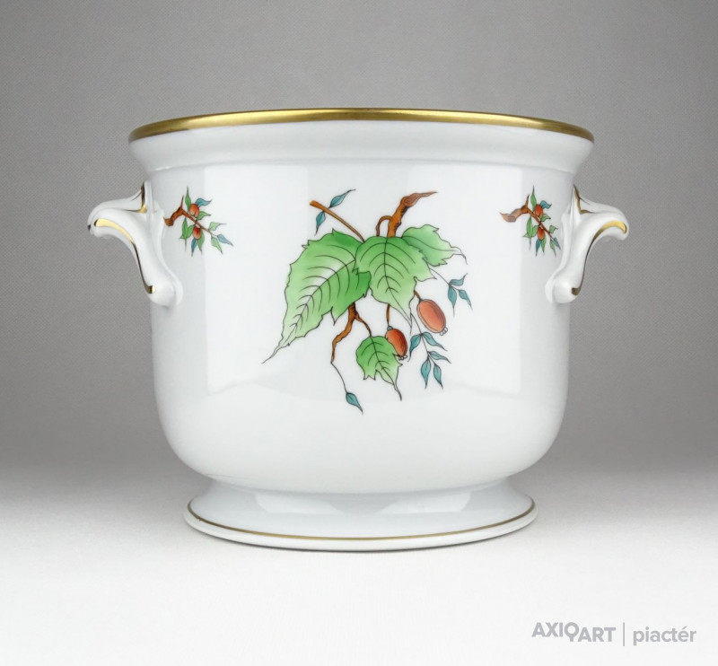 Hibátlan állapotú, nagy méretű, Herendi hecsedli, csipkebogyó mintás virágkaspó.