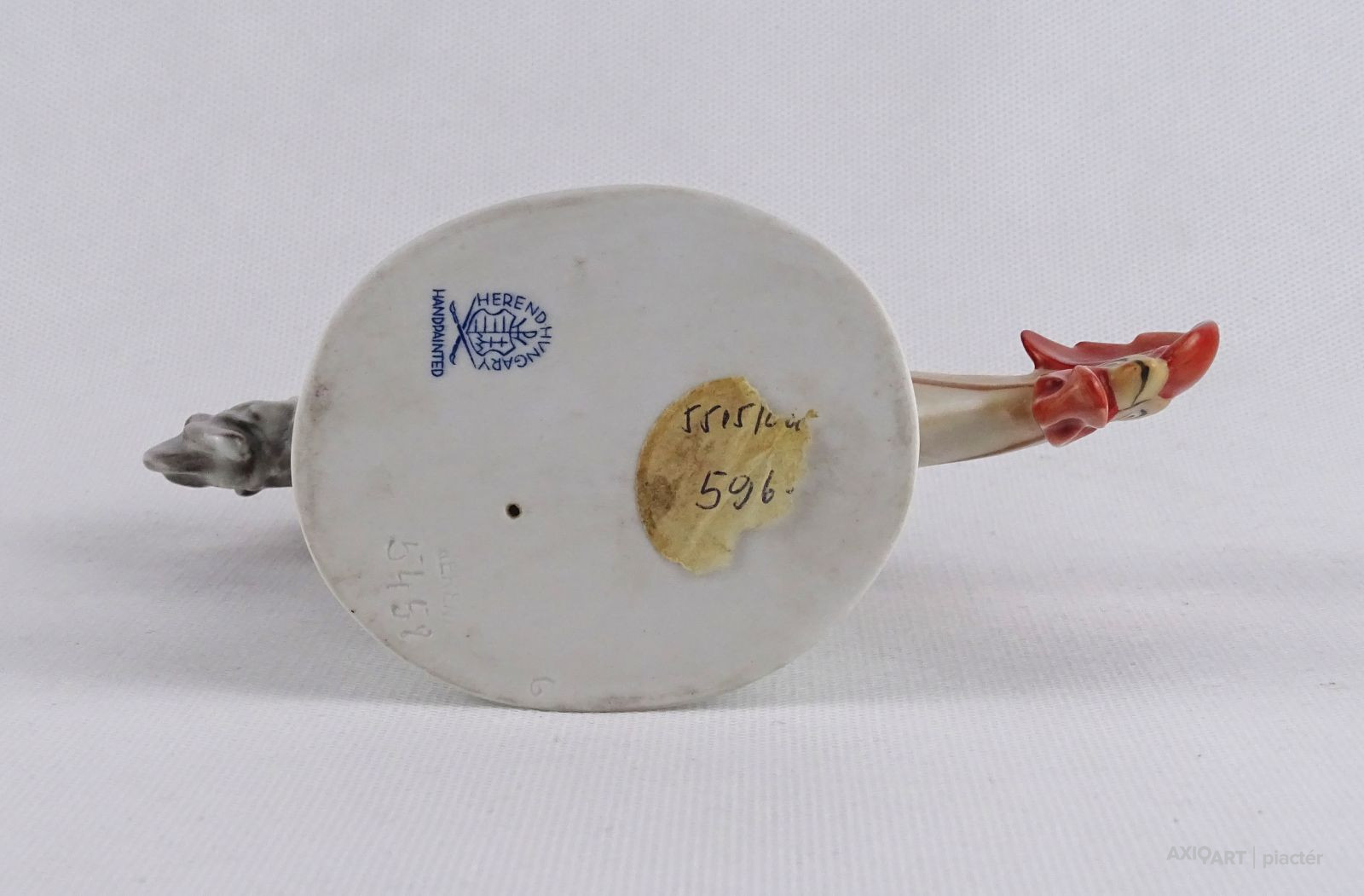 [1T637/Z016] Hibátlan állapotú, régi, kézi festéssel díszített Kakas Marci porcelán figura. Alján kék színű I. osztály Herendi márkajelzés: HEREND HUNGARY HANDPAINTED Mélynyomással: HEREND Formaszám: 5458 Magasság: 14.5 cm Szélesség: 7 cm Hosszúság: 17.3 cm Súly: 0.28 kg