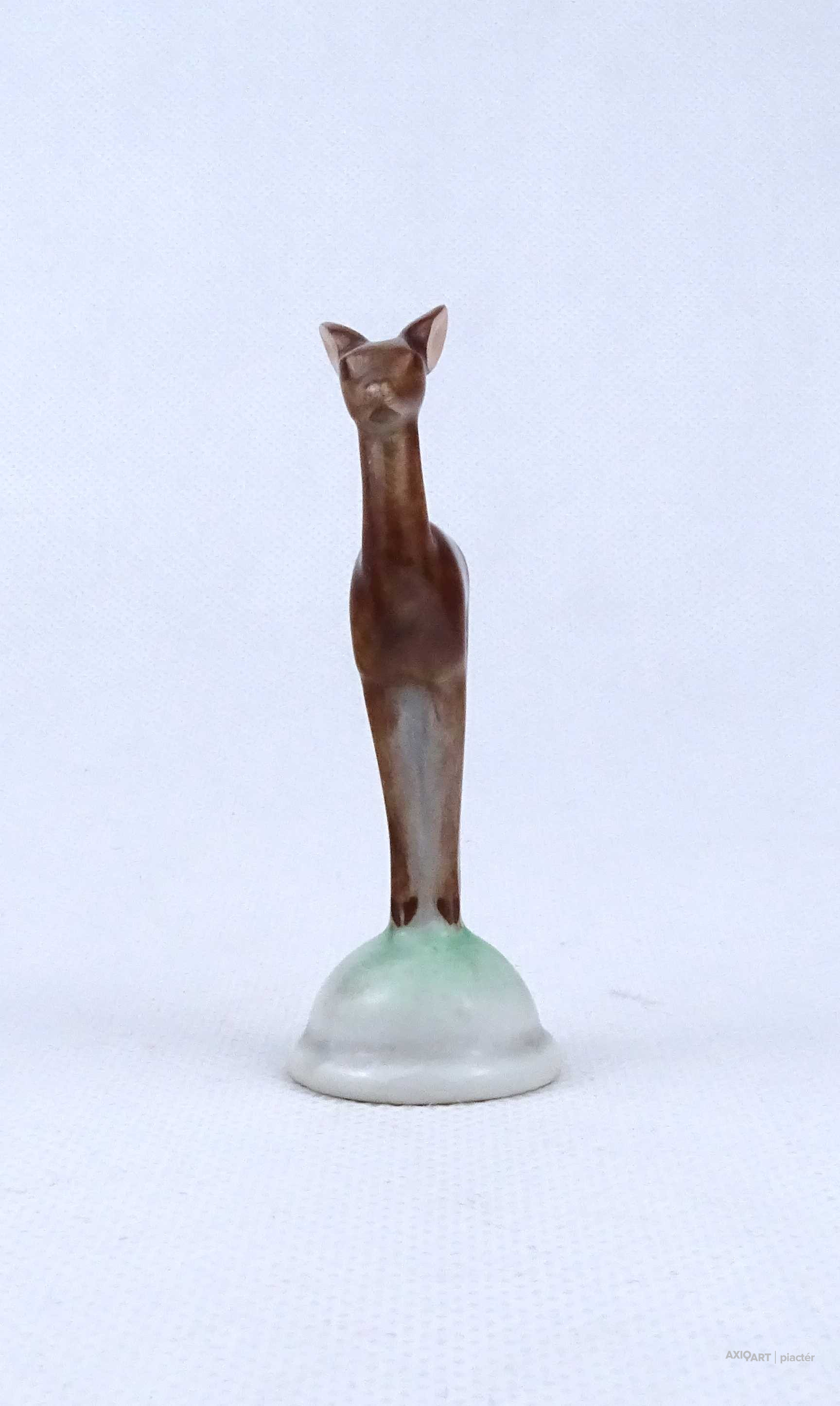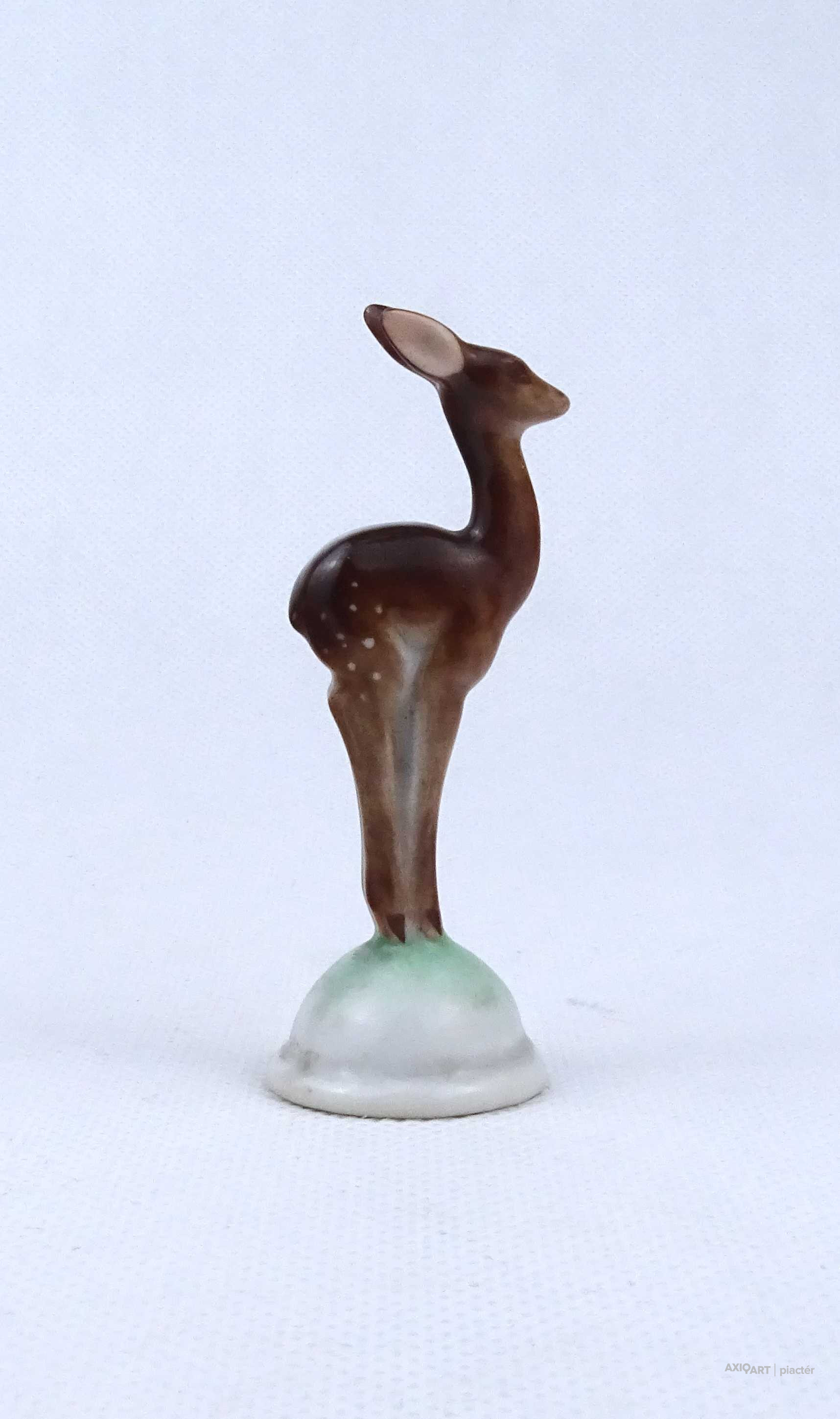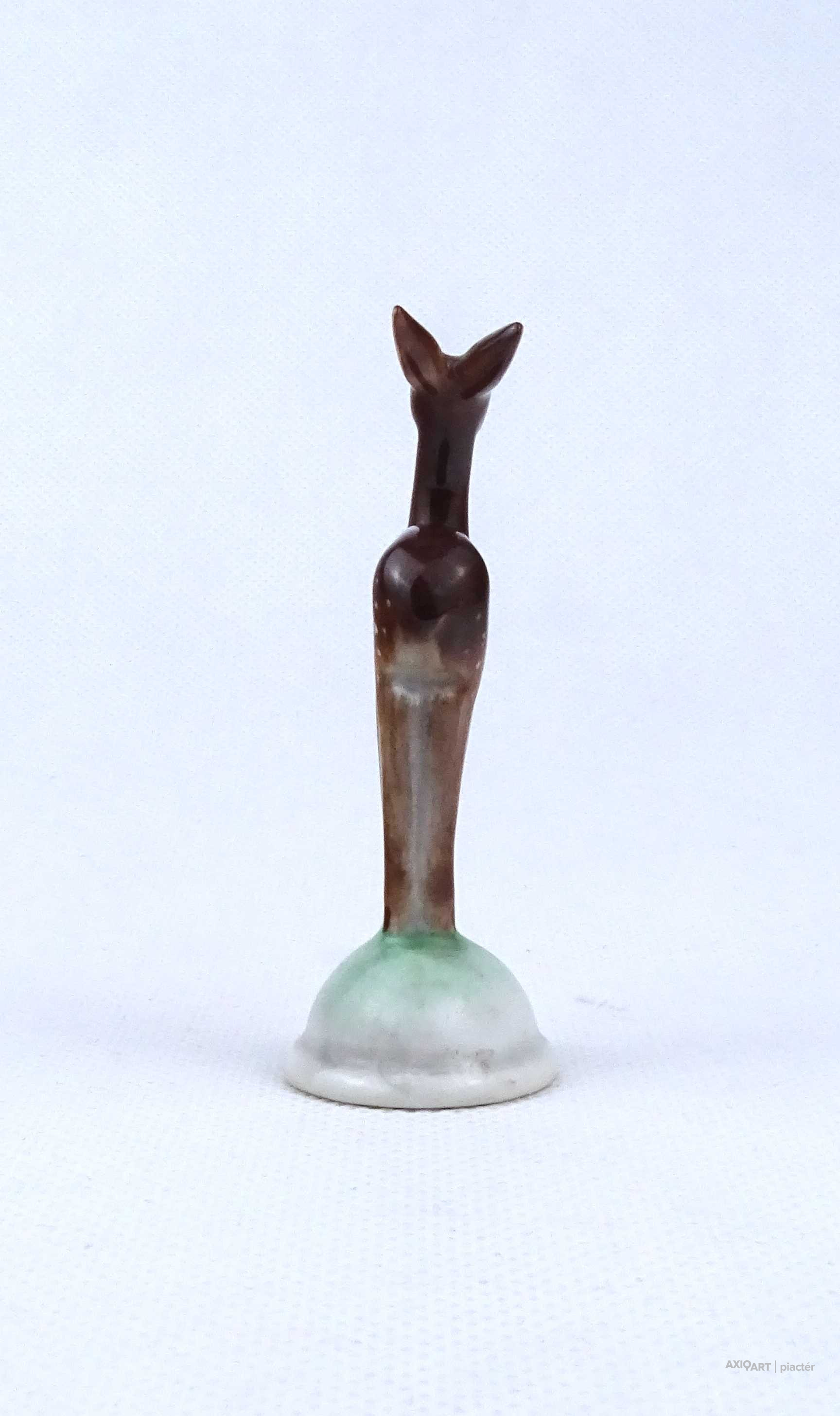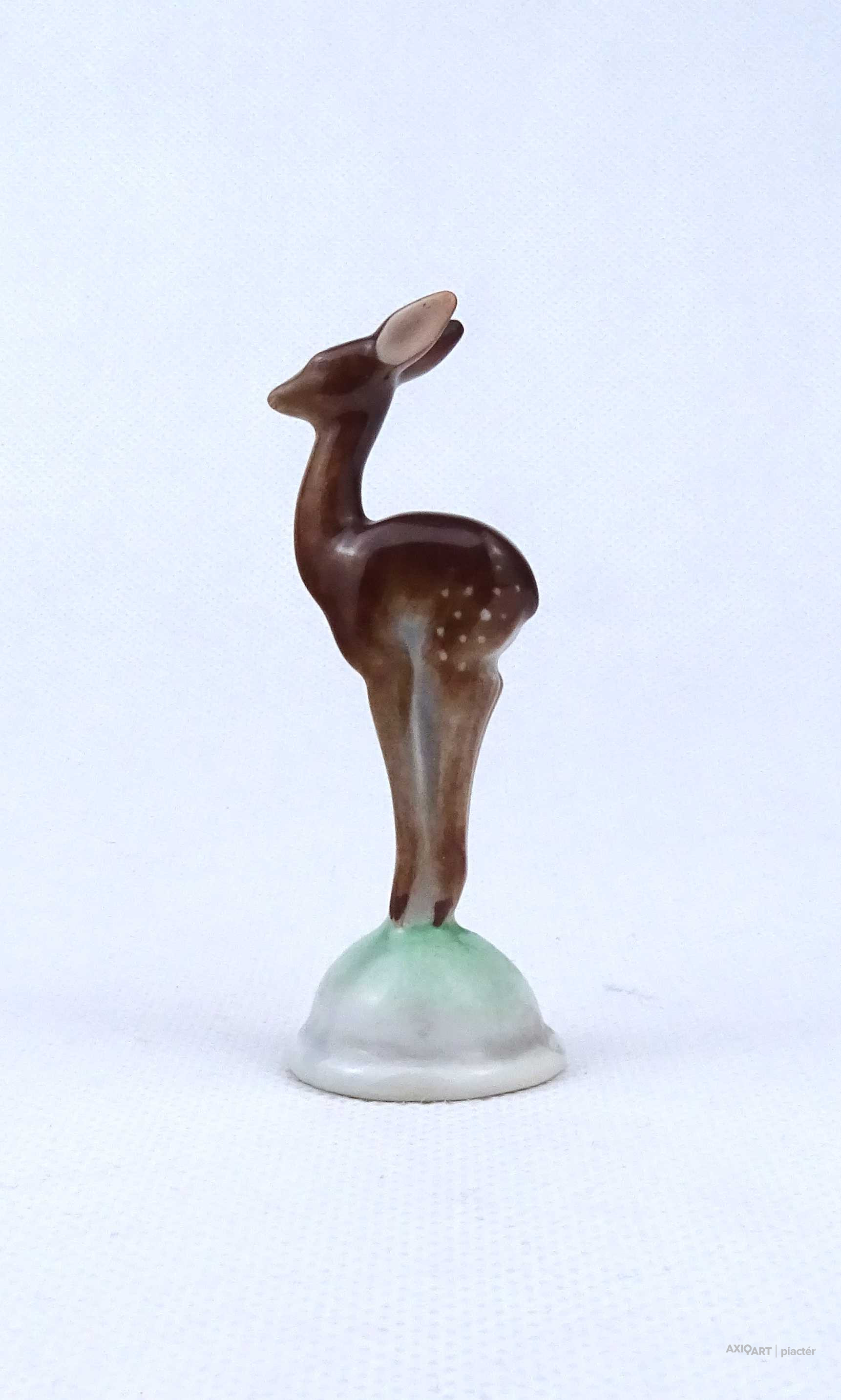 Hibátlan állapotú, talapzaton álló kis méretű Herendi porcelán őz figura, mini őzike.