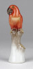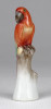 Hibátlan állapotú, talapzaton, faágon ülő kis méretű Herendi porcelán madár, papagáj.