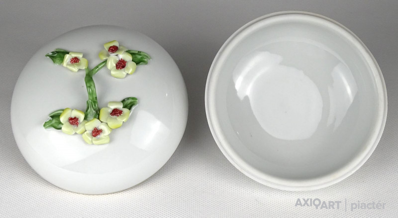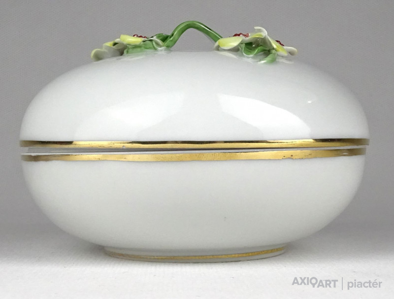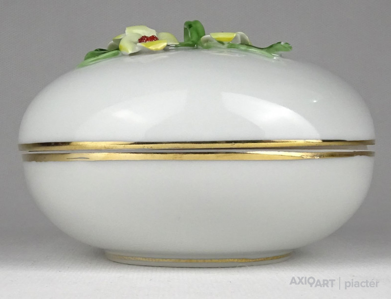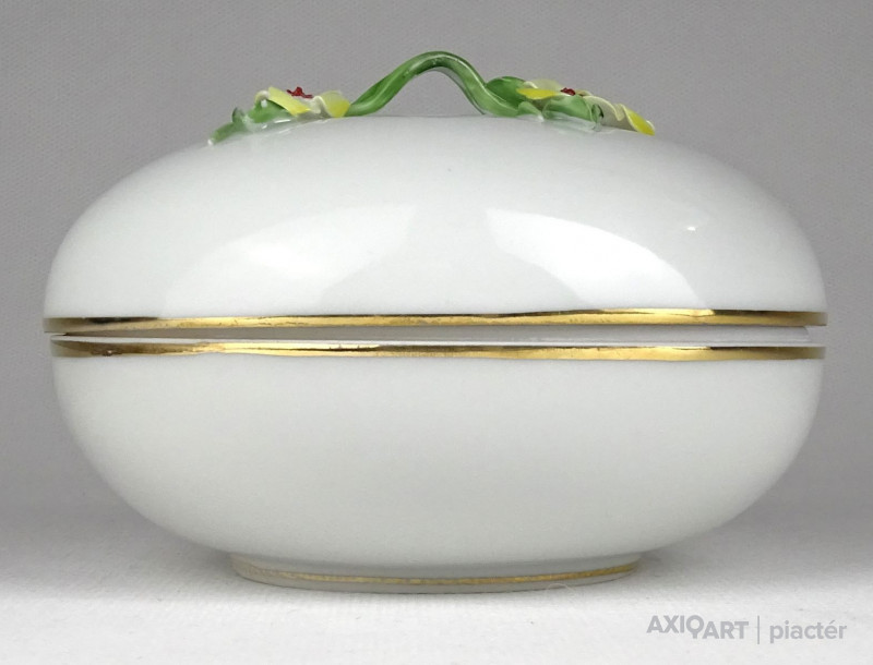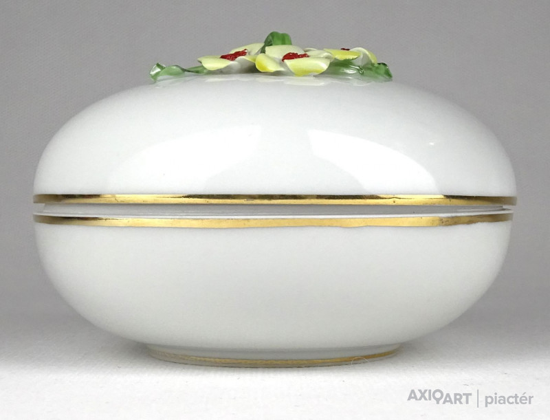 Régi Herendi porcelán bonbonier virágos tetővel
