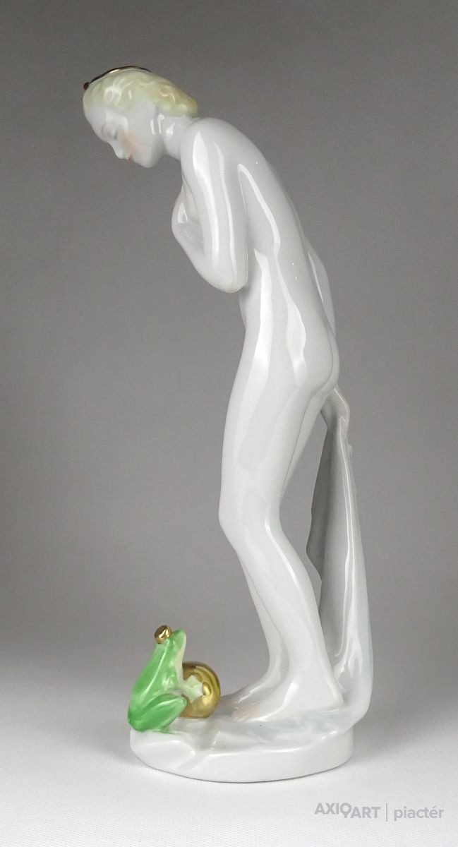 Régi Herendi porcelán hercegnő és a békakirály 27.5 cm