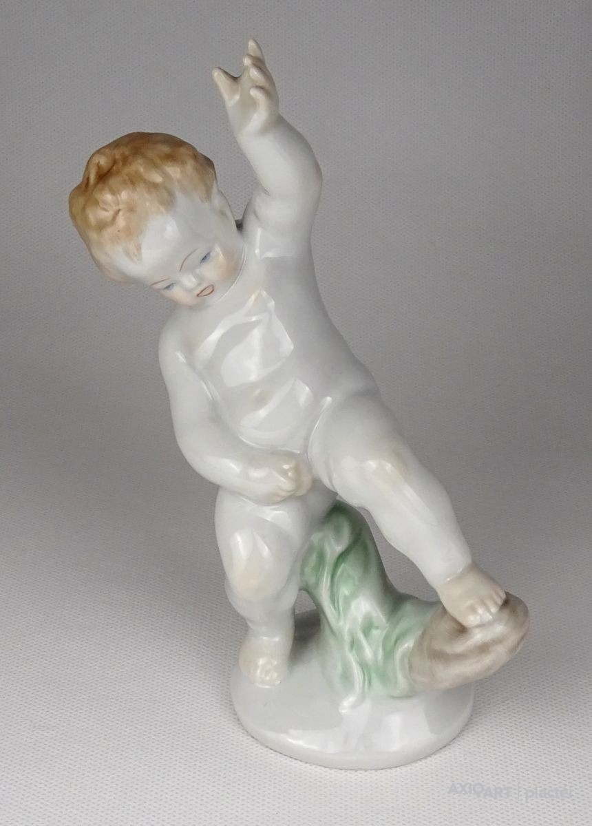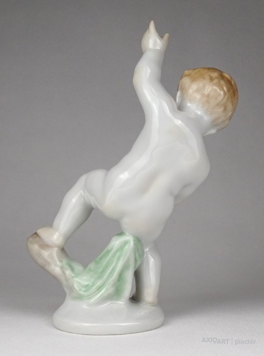 Hibátlan állapotú, Herendi porcelán figura. Pisilő fiú, kisfiú talapzaton.