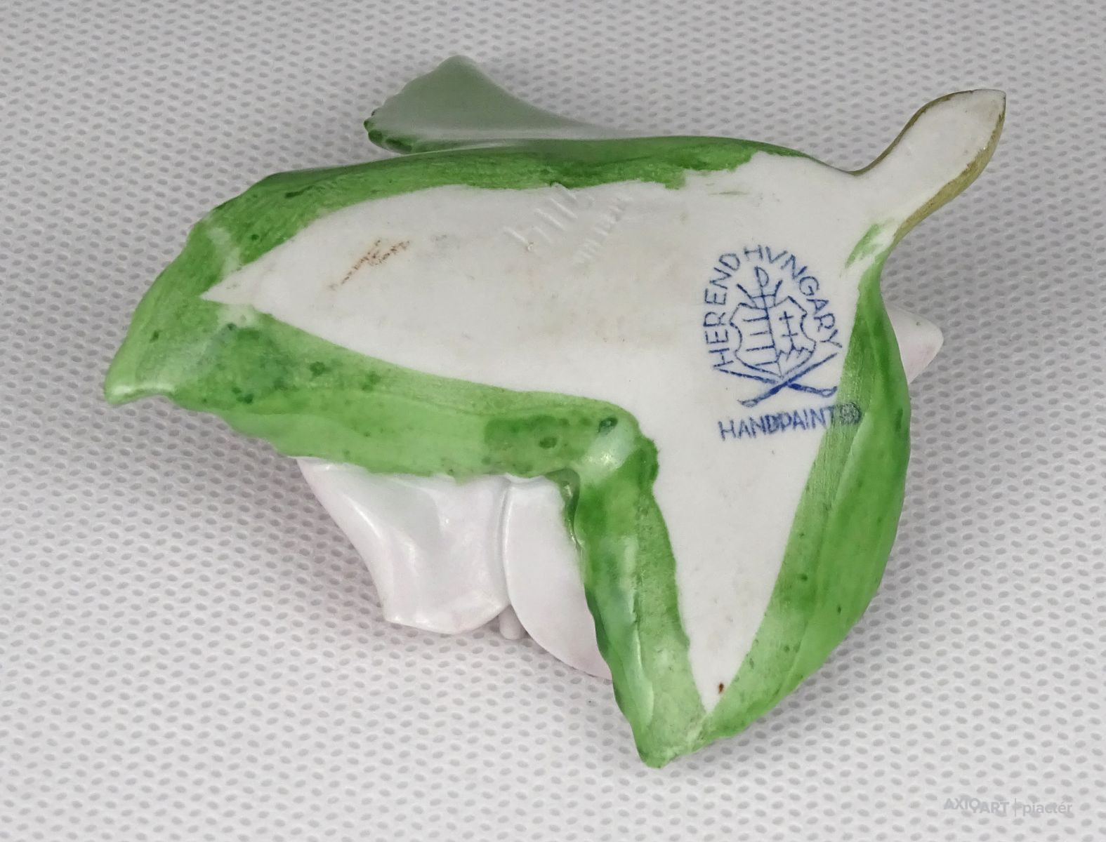 [1R770/Z016] Hibátlan állapotú, régi, ritka Herendi porcelán virág. Alján kék Herendi jelzés: HEREND HUNGARY HANDPAINTED Mélynyomással: HEREND Formaszám: 9114 Magasság: 4 cm Szélesség: 7.5 cm Hosszúság: 7.5 cm Súly: 0.045 kg