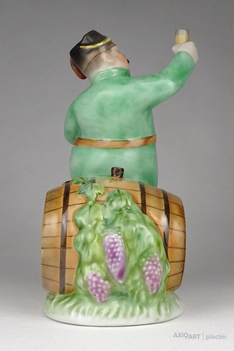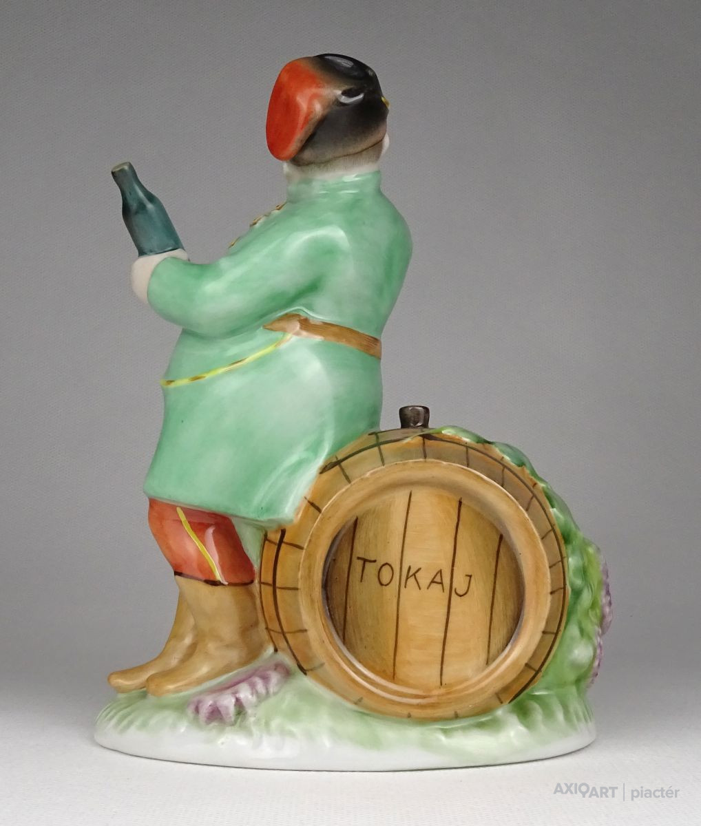 Régi Herendi tokaji bort ivó porcelán katona figura TOKAJ feliratú hordóval 18 cm