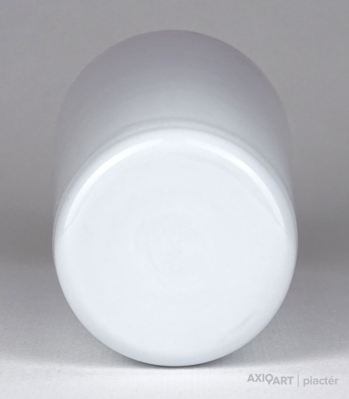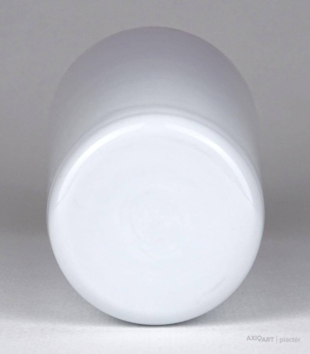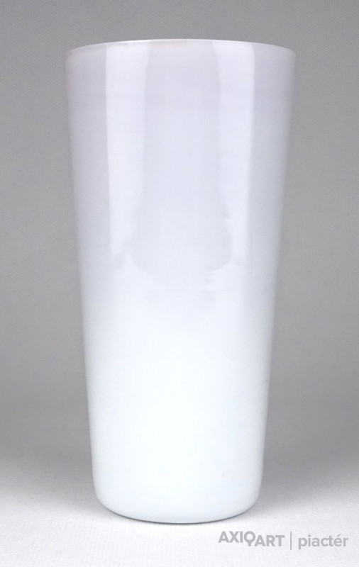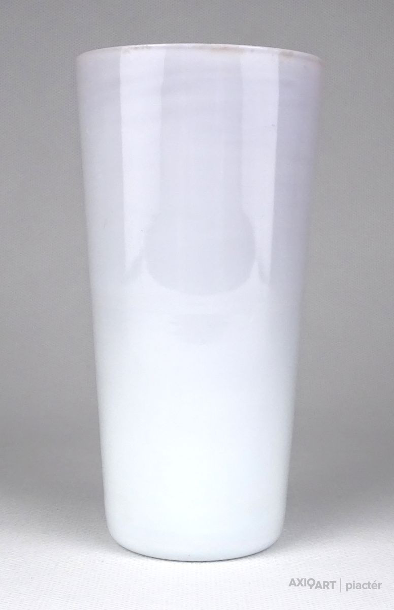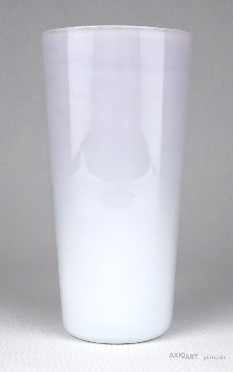 Hibátlan állapotú, piros és fehér színezett, rétegelt üveg. Pohár fazonú fújt üveg váza.