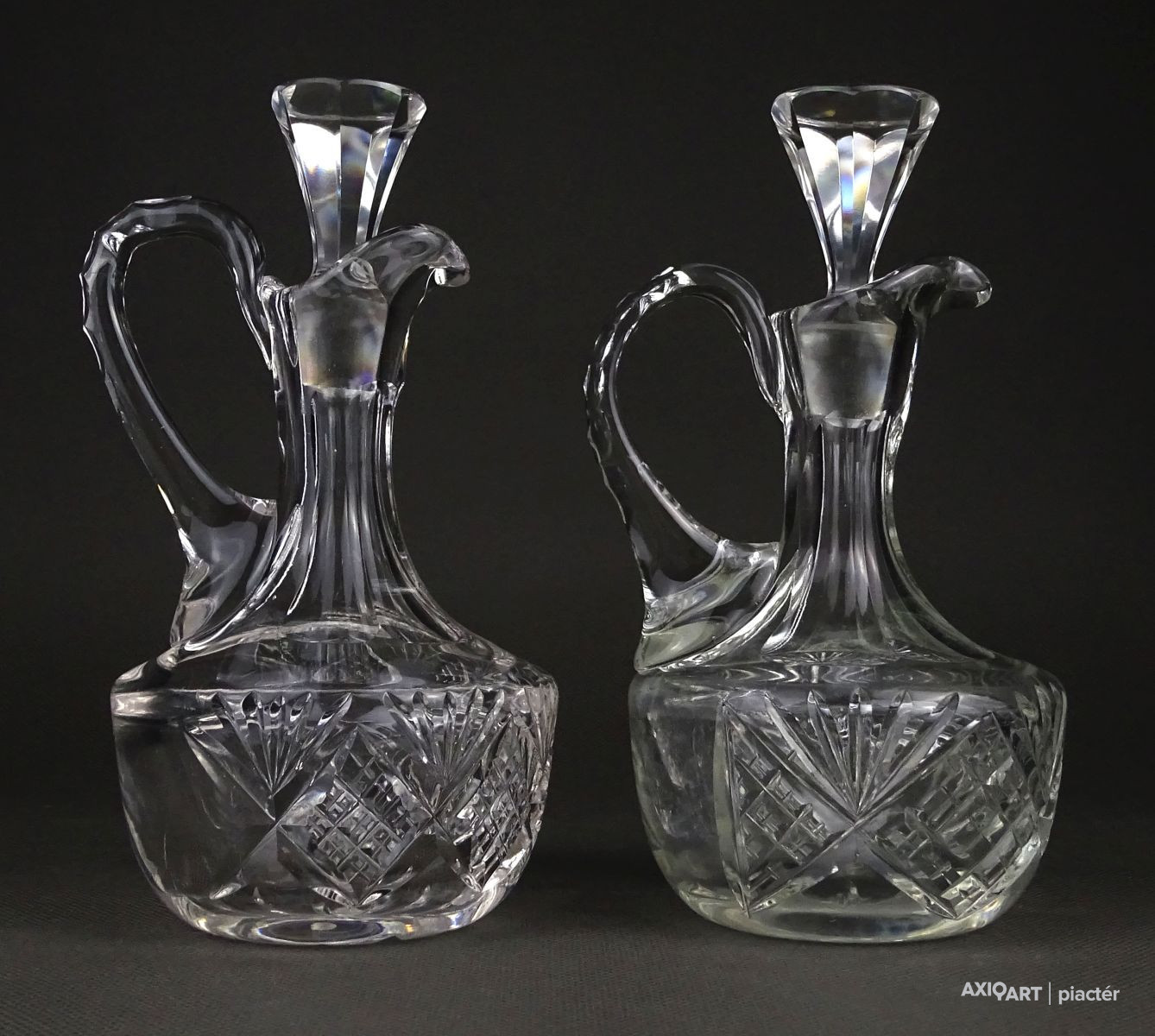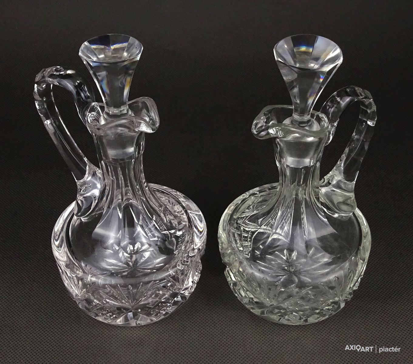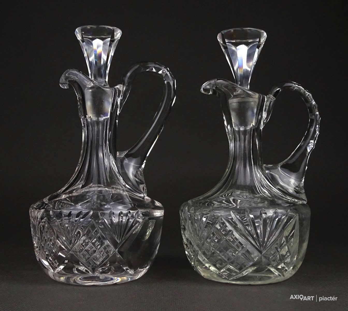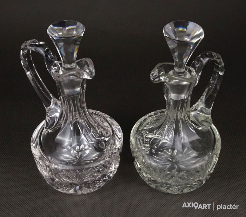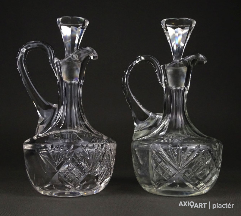Hibátlan állapotú teljes felületén csiszolatokkal díszített ecetes és olajos kristály kancsó, kiöntő.