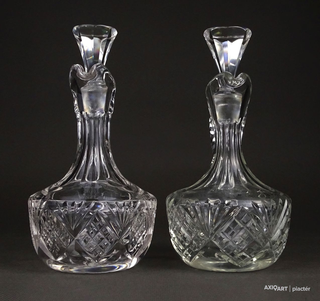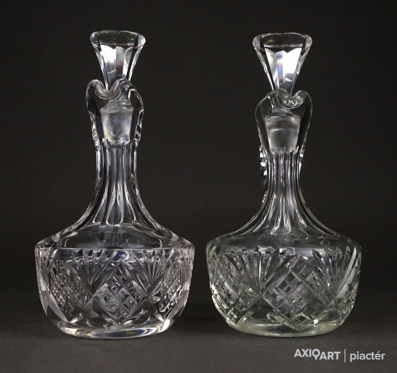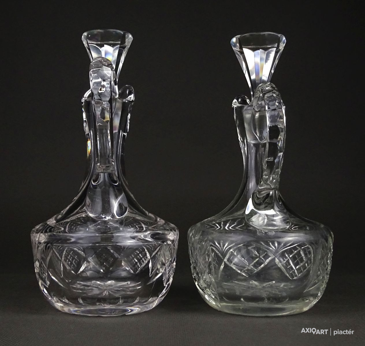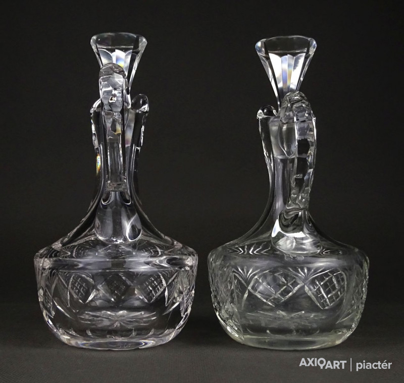 Hibátlan állapotú teljes felületén csiszolatokkal díszített ecetes és olajos kristály kancsó, kiöntő.