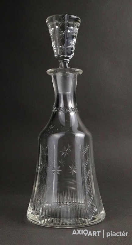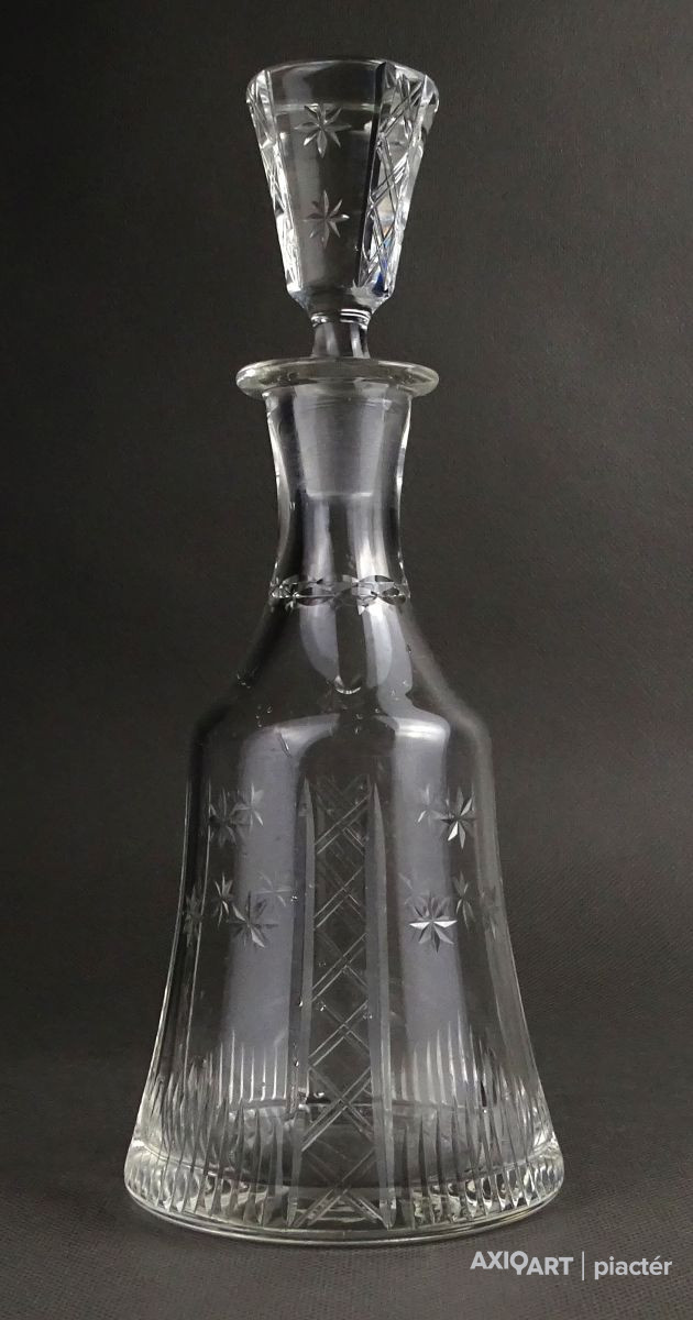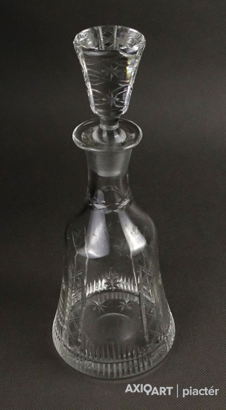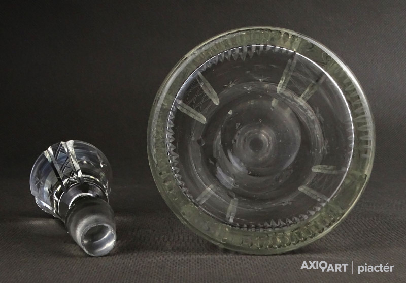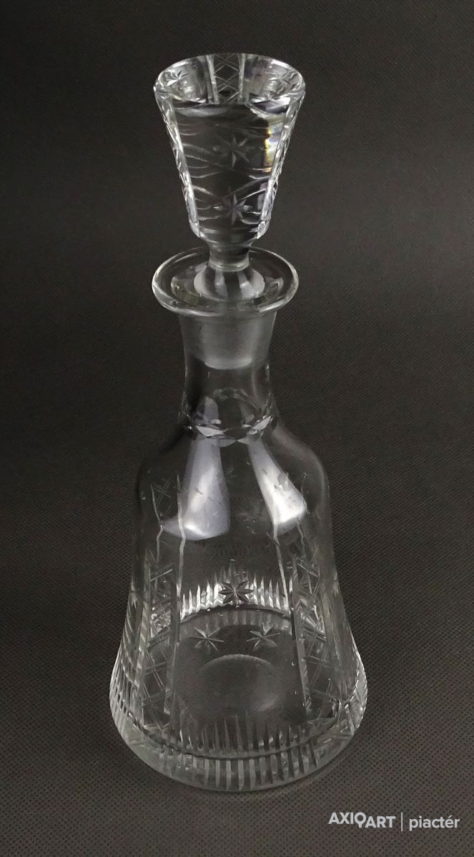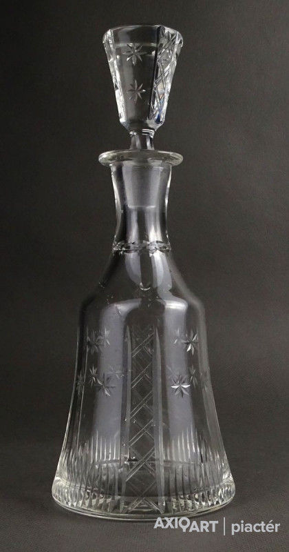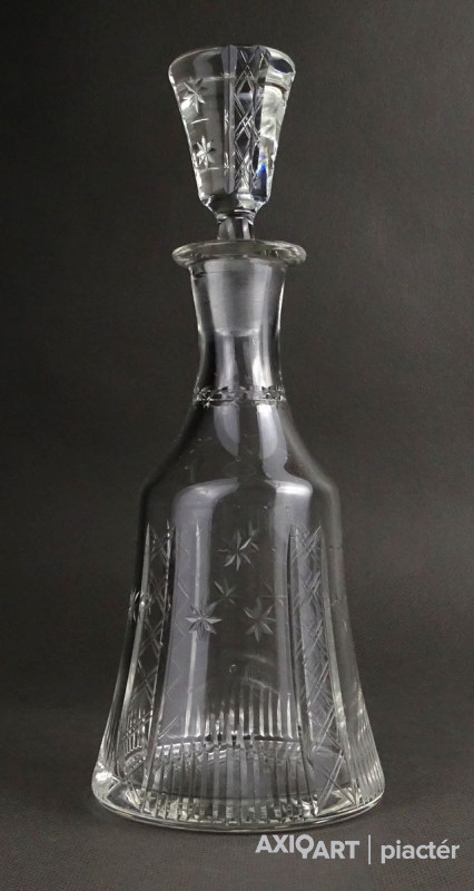 Hibátlan állapotú, csiszolatokkal díszített, kristály italkínáló üveg eredeti csiszolt dugójával.