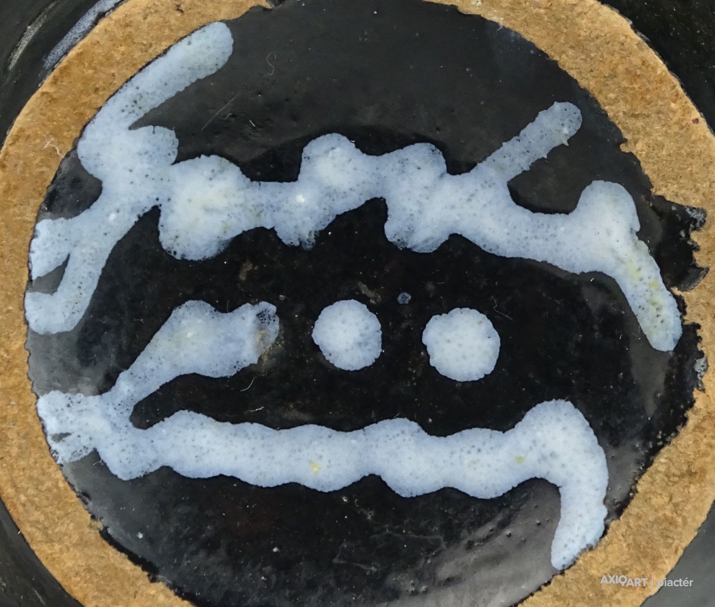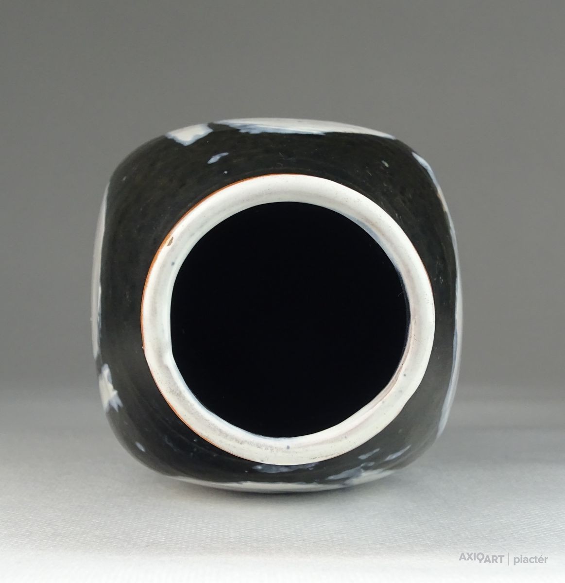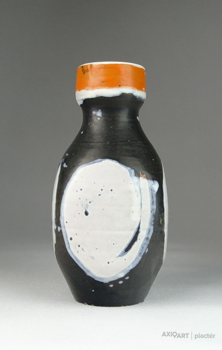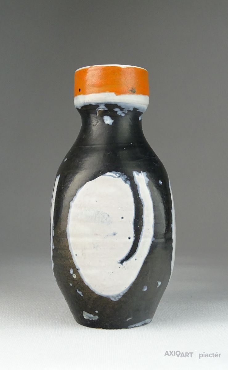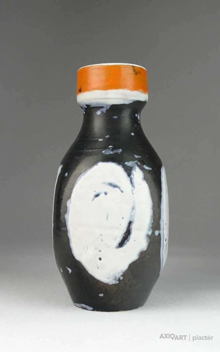 Régi, jelzett, hibátlan állapotú Gorka Lívia díszváza fekete, fehér és narancs mázzal.