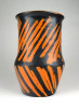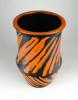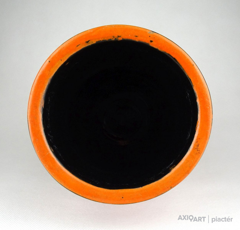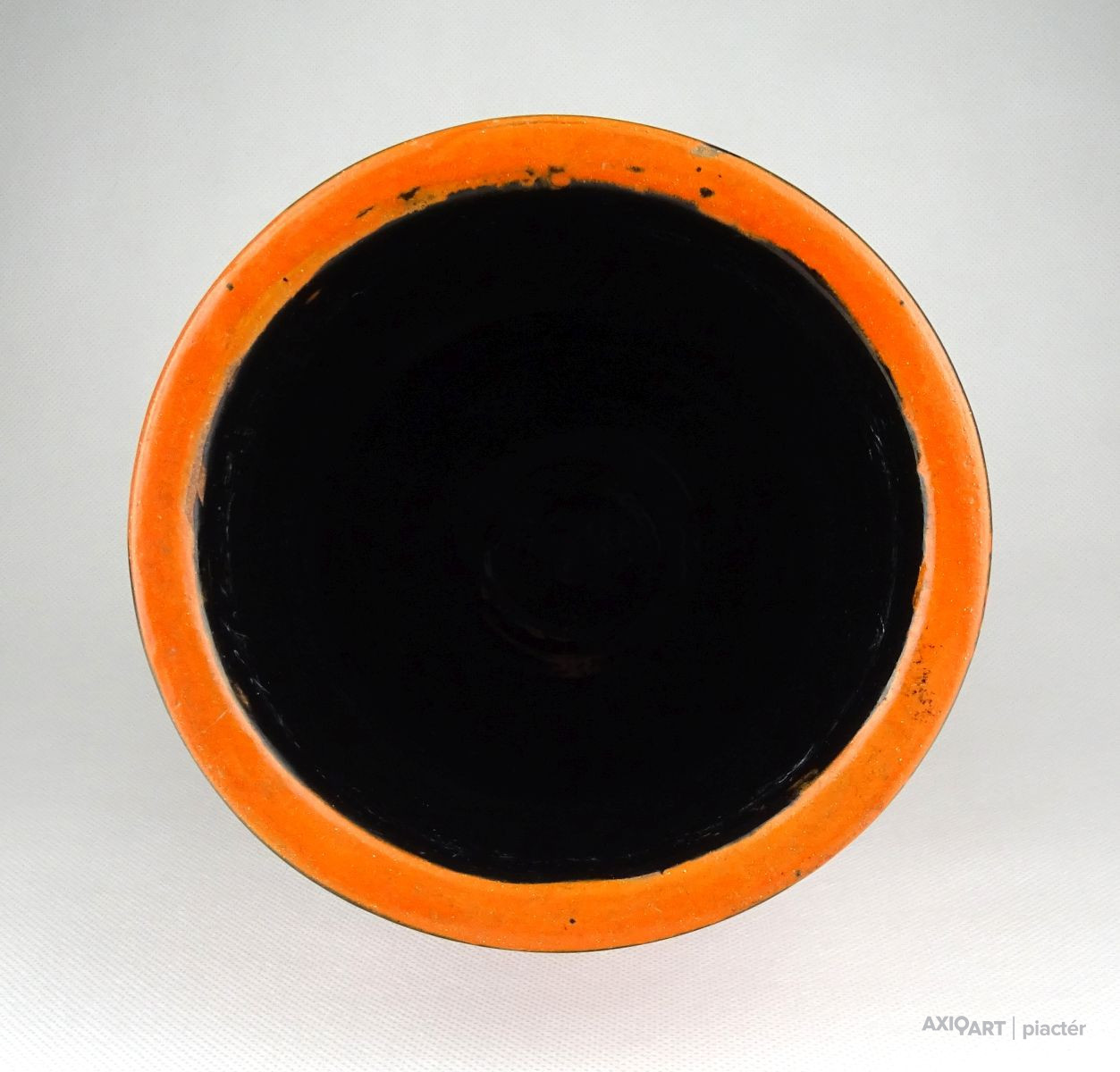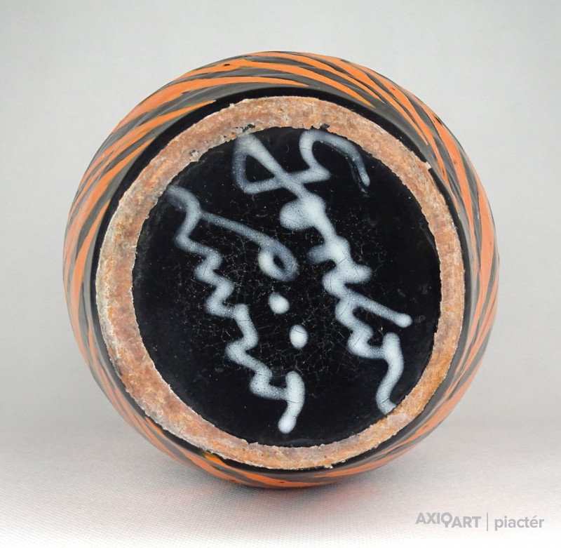 Régi, jelzett, hibátlan állapotú öblös Gorka Lívia díszváza fekete narancs mázzal.