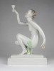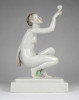 Hibátlan állapotú, jelzett Herendi porcelán figura. Fáklyát tartó, talapzaton térdelő nő olimpikon.