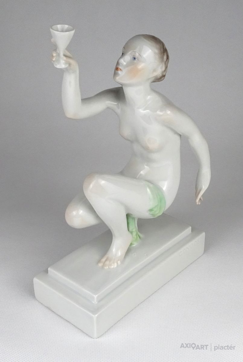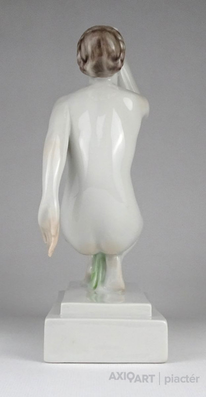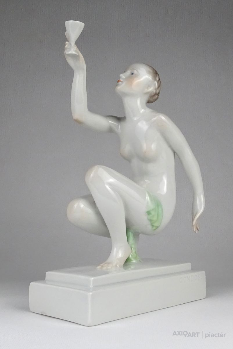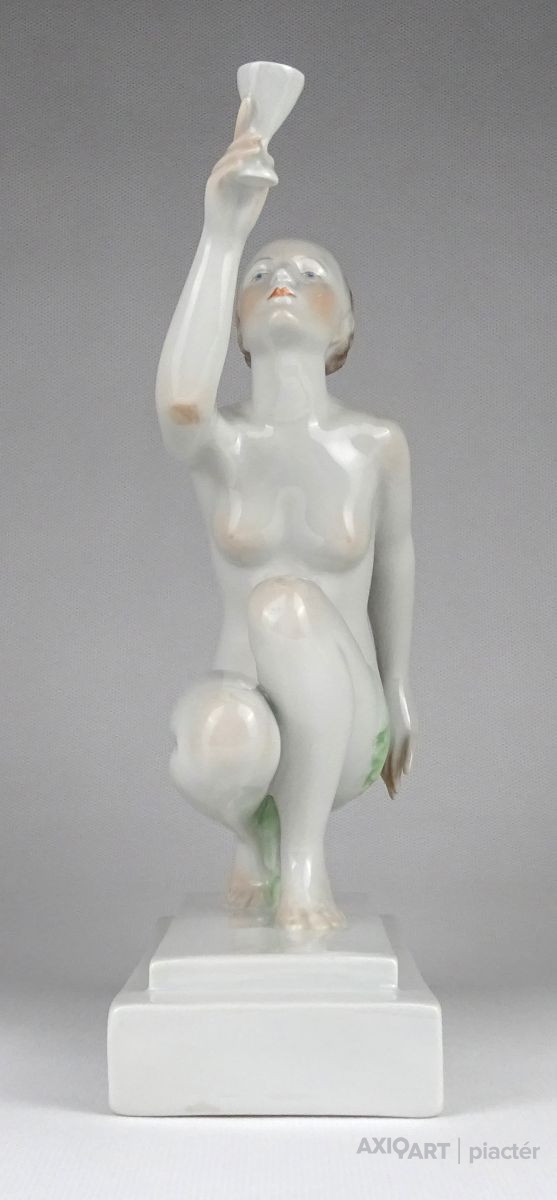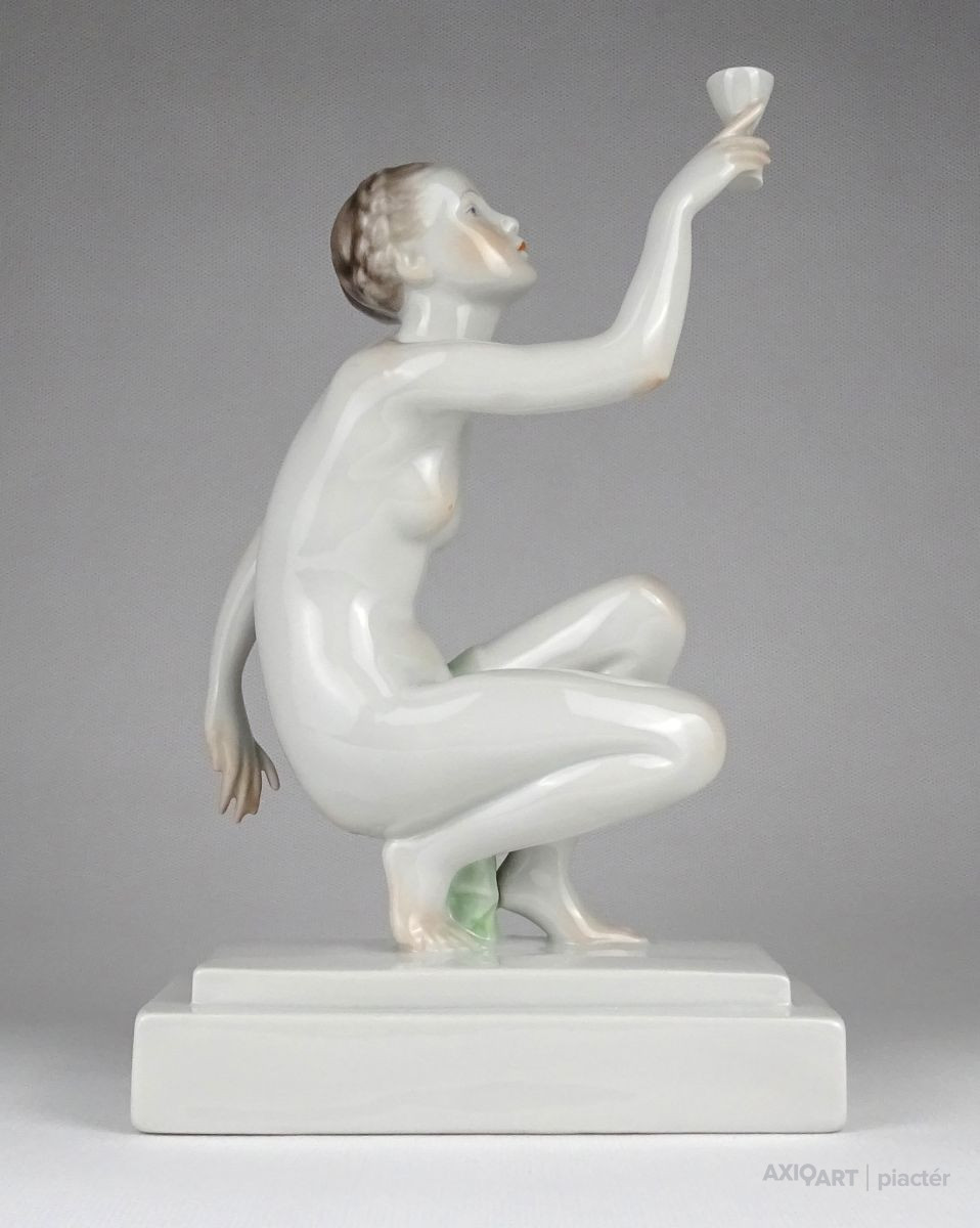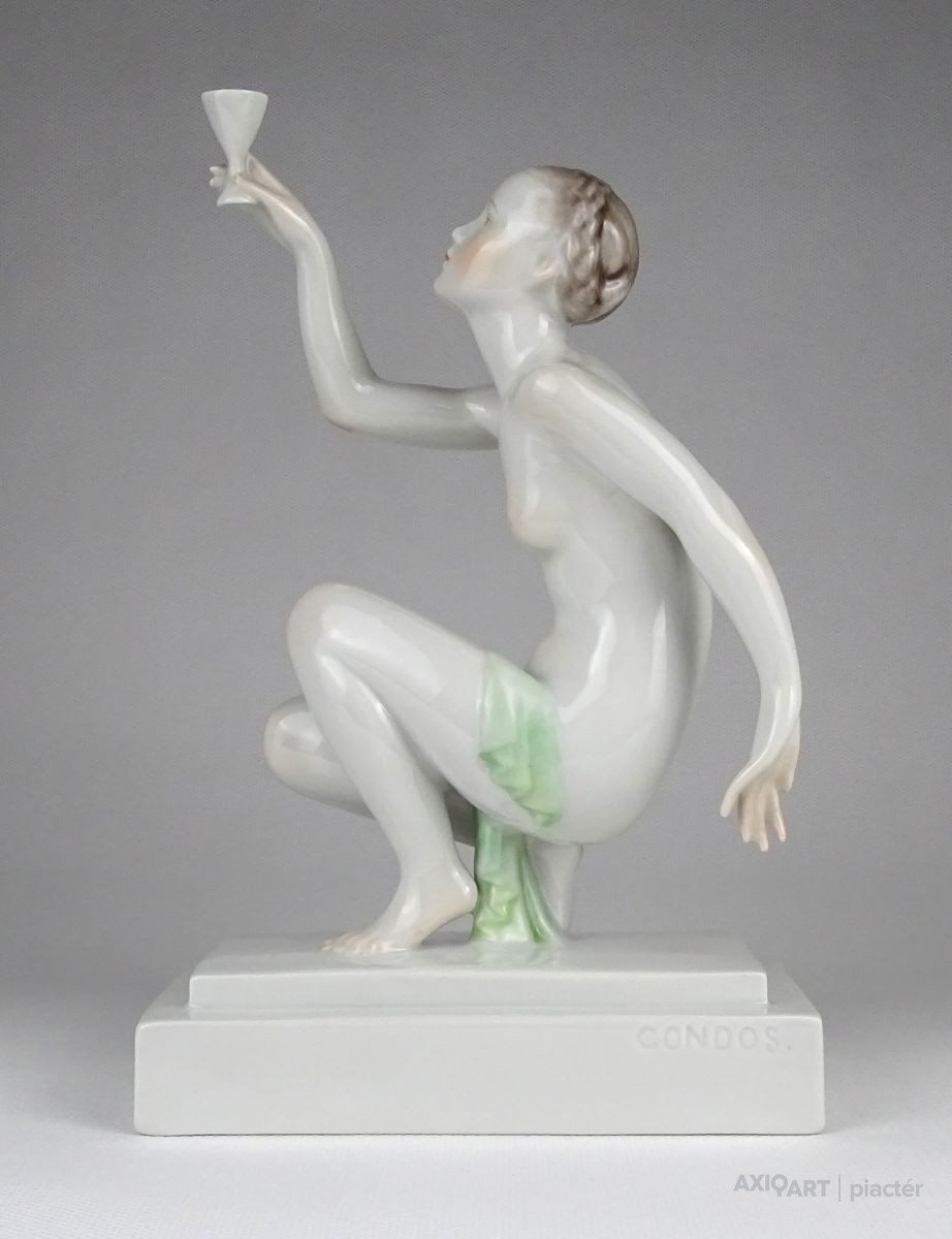 [1N570/Z023] Hibátlan állapotú, jelzett Herendi porcelán figura. Fáklyát tartó, talapzaton térdelő nő olimpikon. Alján kék Herendi jelzés: HEREND HUNGARY Mélynyomással: HEREND Formaszám: 5737 Talapzat oldalán formatervező neve: GONDOS (Gondos József) Magasság: 23 cm Szélesség: 7 cm Hosszúság: 14.5 cm Súly: 0.63 kg Gondos József szobrász Budapest, 1909-06-13 Elhalálozott: Budapest, 1987. november 15. 1930-34: Magyar Iparművészeti Főiskola, díszítőszobrász szak, mestere: Lux Elek, Reményi József, Mátrai Lajos. Elsősorban kisplasztikákat készített, közülük néhányat a Herendi Porcelángyár sokszorosított (Olympiai tűz, Hódolat a győztesnek). Az 50-es évektől több terrakotta épületplasztikára kapott megbízást.   Irodalom SIKOTA GY.: Herendi porcelán, Budapest, 1970 P. SZŰCS J.: Művészetpolitika porcelánban, Művészet, 1980. szeptember Válogatott csoportos kiállítások Válogatott csoportos kiállítások 1937, 1939, 1942, 1943, 1944 • Téli Tárlat, Műcsarnok, Budapest 1938 • Őszi Tárlat, Műcsarnok, Budapest 1940 • Magyar művészetért, Műcsarnok, Budapest 1940, 1944 • Tavaszi Tárlat, Műcsarnok, Budapest 1941 • Jubileumi kiállítás, Műcsarnok, Budapest • Arcképkiállítás, Műcsarnok, Budapest 1943 • Iparművészeti kiállítás, Kassa 1954 • 5. Magyar Képzőművészeti kiállítás, Műcsarnok, Budapest. Művek közgyűjteményekben Művek közgyűjteményekben Forrás: artportal.hu
