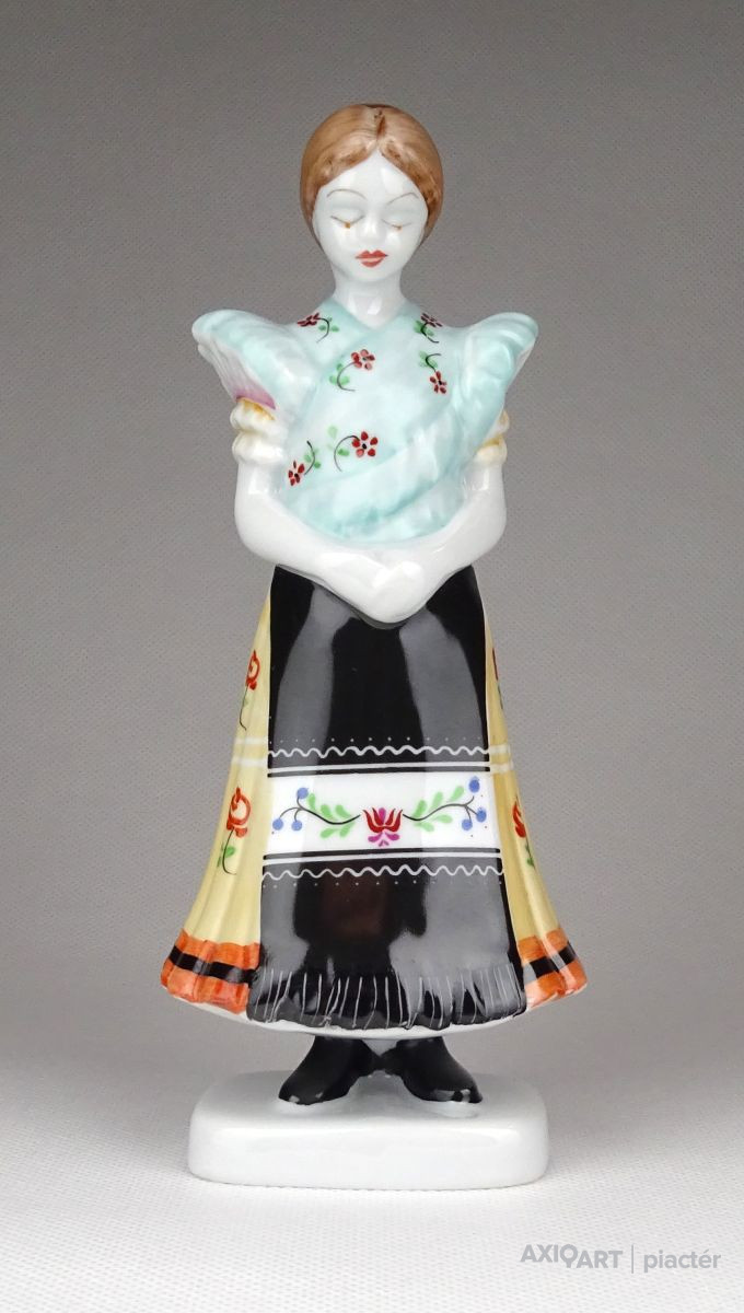Hibátlan állapotú, Hollóházi porcelán menyecske szobor népviseletben. Kézi festéssel díszített.