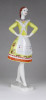 [1L579/X208] Hibátlan állapotú, nagy méretű Hollóházi porcelán menyecske szobor népviseletben. Kézi festéssel díszített. Alján zöld márkajelzés: HOLLÓHÁZA KÉZZEL FESTETT Magasság: 23.5 cm Szélesség: 7.7 cm Súly: 0.22 kg