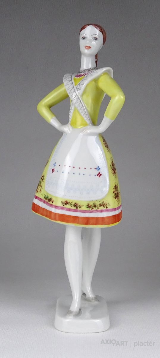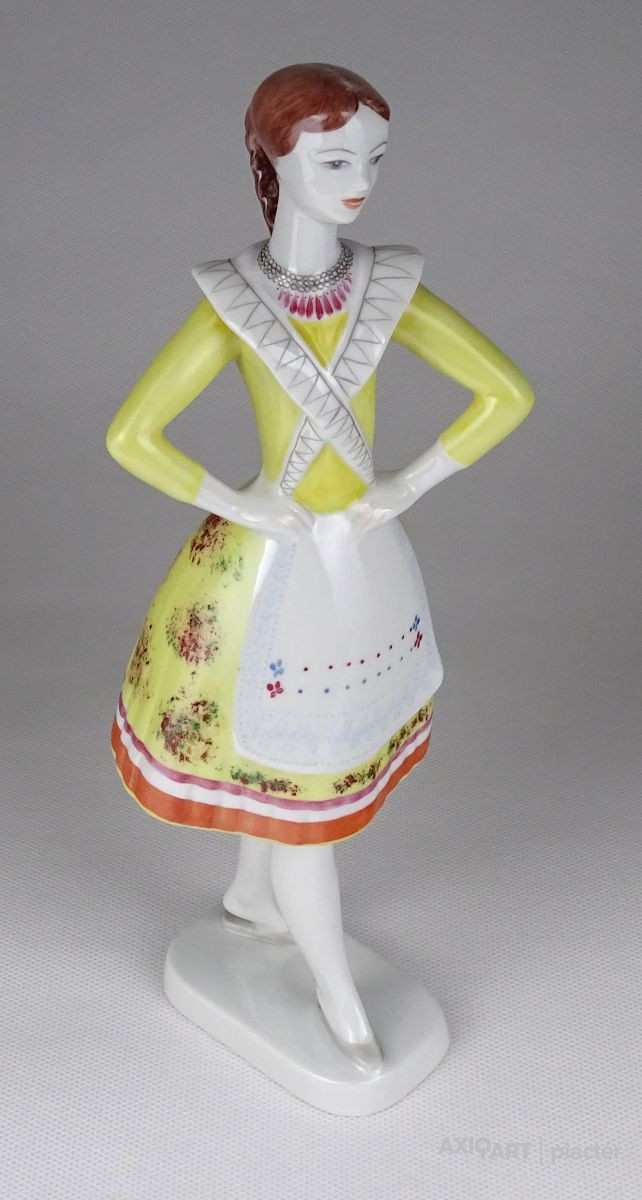 Régi Hollóházi porcelán menyecske 23.5 cm