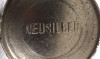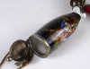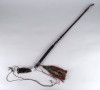 [1J977/UZ-N] Régi, hosszú fa szárral rendelkező porcelánfejes, fém fedeles pipa. A pipát bajor kétalakos jelenet, citerázó férfi és zenét hallgató népviseletes női alak díszíti. A fa szár végén szaru szipka található. Felirat a fejen: ZITHERSPIELER A fej fém belső fején felirat: NEUSILBER Hosszúság: 63 cm Súly: 0.095 kg