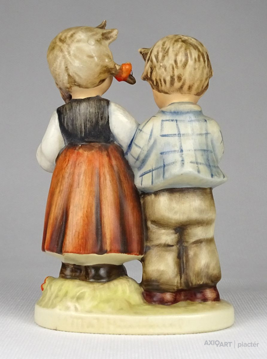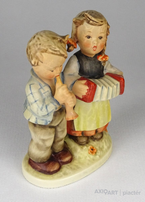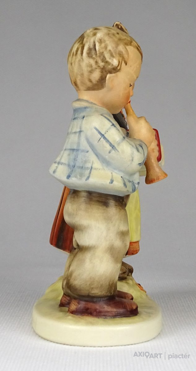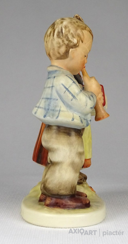 [1P015/VTR-2] Régi hibátlan Hummel harmonikás kislány és furulyás kisfiú páros talapzaton. A furulya vége és a talapzat restaurált. Alján kékkel Hummel jelzés, lásd fotó. Talapzaton hátul mélynyomással: M. I. HUMMEL Magasság: 13.3 cm Szélesség: 5.5 cm Hosszúság: 8.6 cm Súly: 0.195 kg
