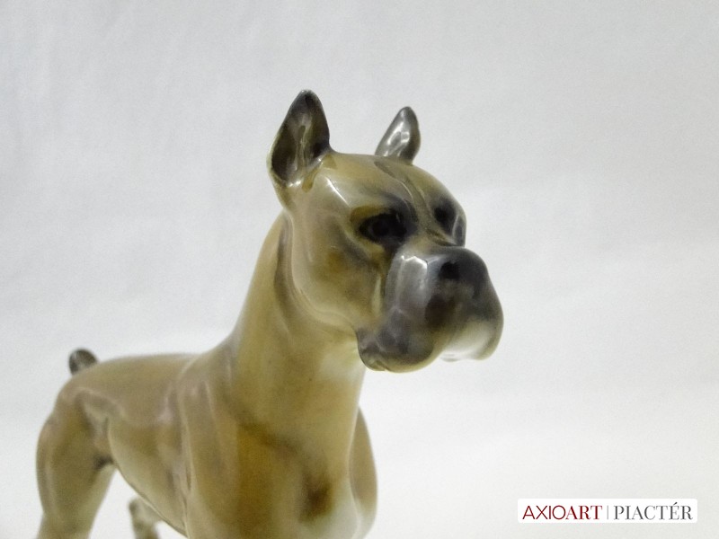 Régi hibátlan állapotú jelzett szép élethű német porcelán boxer kutya szobor, kézi festésű.