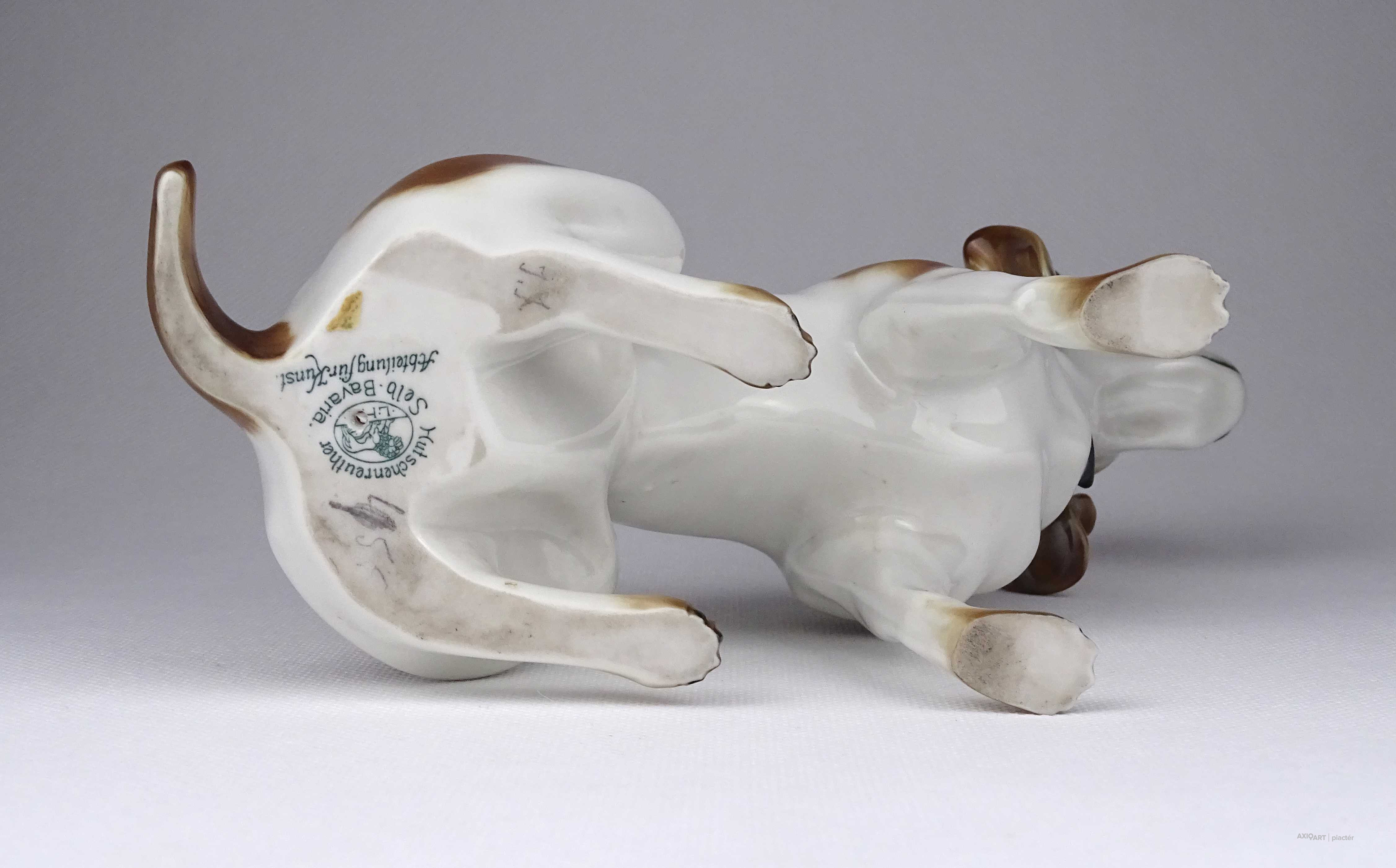 [1X459/Z028] 25% ÁRENGEDMÉNY MINDEN TERMÉKÜNKRE Dec. 14-ig Régi, hibátlan állapotú, nagyméretű, jelzett, élethű, kézi festésű német Hutschenreuther porcelán vadász kutya szobor, porcelánfigura. Alján zöld oroszlános márkajelzés. HUTSCHENREUTHER SELB BAVARIA ABTEILUNG FÜR KUNST Magasság: 20 cm Szélesség: 9 cm Hosszúság: 20 cm Súly: 0.545 kg