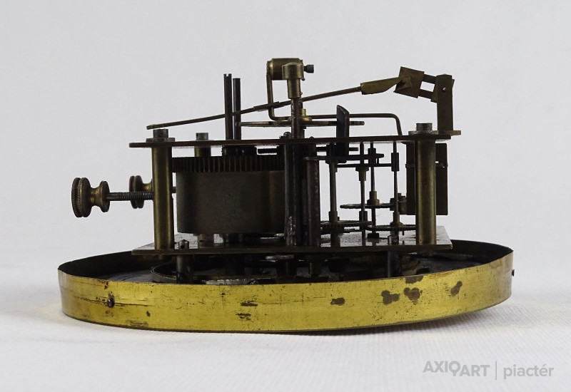 Régi épített fa tokban található óra. Ingás, kétkulcsos, feles ütős szerkezettel rendelkezik. Felhúzókulcsa is megvan. Az óra működik, cca egy hetes járású, de nem pontos! Tisztítani, karbantartani biztosan kell.