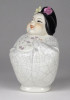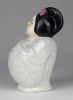 Régi ritka art deco porcelán figura. Kis méretű mosolygós japán nő porcelán figura. A virág hajdíszek javítottak.