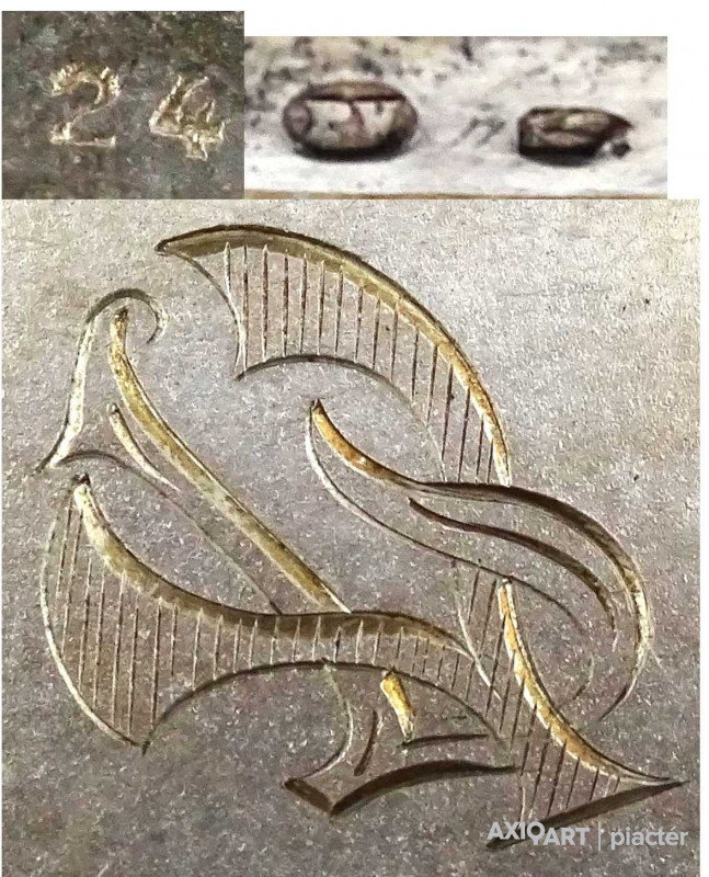 Régi, szép állapotú, jelzett, 800-as finomságú ezüst cigaretta tárca, cigaretta dózni. Peremén belül 800-as finomságú, 4-es, hátra néző gólya jelzés, mellette PV (Állami Pénzverő) gyártói jelzés.