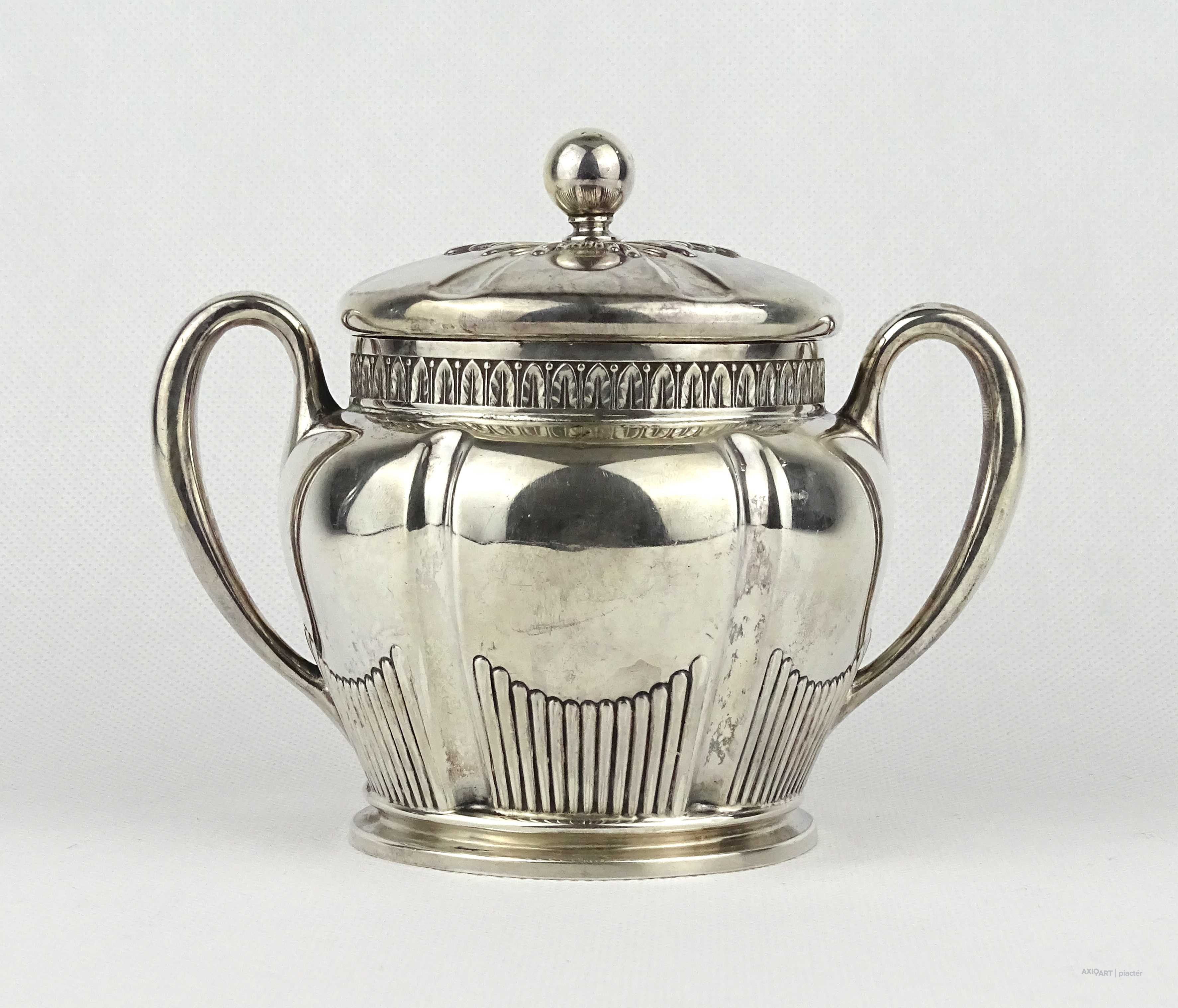 Régi jelzett 925-ös német ezüst monogramos fedeles bonbonier 351 g