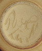 [1Y029/Z018] Olaj farost festmény, üveglap mögött, hibátlan képcsarnokos keretben. Hátoldalán Képcsarnok Vállalat papír címkéje: A művész neve: SCHÉNER MIHÁLY A kép címe: TÁJ Magasság: 66.5 cm Szélesség: 86 cm Súly: 6.54 kg Schéner Mihály festő, grafikus, szobrász, keramikus, bábtervező Medgyesegyháza, 1923-01-9 Elhalálozott: Budapest, 2009. május 11. Honlap: http://www.kormendigaleria.hu/kiadvany.html 1942-1947: Magyar Képzőművészeti Főiskola, tanára: Rudnay Gyula. 1978: Munkácsy-díj; 1984: érdemes művész; 1989: kiváló művész; 1995: Kossuth-díj. 1992-től a Magyar Művészeti Akadémia, 1993-tól a Széchenyi Irodalmi és Művészeti Akadémia tagja. 1956-ig tanított. 1982: Nagyatádi Faszobrász Alkotótelep, 1985: Nemzetközi Acélszobrász Alkotótelep, Dunaújváros. A stílusában felismerhető, mégis sokféle műtárgyat létrehozó ~ gazdag, állandóan alakuló életműve a folyton változó világban helyét kereső, az alkotói szabadságot megvalósító XX. századi képzőművész példázata lehetne. Magát expresszív-szürrealista alkotónak nevezi. Egyaránt dolgozik festékkel, textillel, fával, fémmel. Rajzol, szerkeszt, farag, épít, gyúr, varr és ragaszt, felhasználja a mézesbábok öntőformáit. Festő, rajzoló, textilszobor- és bábkészítő, fazekas, asztalos, esztergályos. Háromlépcsős folyamatban gondolkozik: rajzban tervez, majd fest, szobrot készít, “formába önt”, mindig a végső plasztikai megoldást keresi. Ami állandó és mégis játékosan változékony megjelenésű Schéner művészetében, az a gyermekkori emlékek által meghatározott népi mesterségek iránti tiszteletet kifejező motívumkincs, a tárgyi folklór formakészlete, amely már-már kézjegyként ismétlődik munkáin. Mitologikussá nőtt képzelete új lényeket teremt, pl: a Pigulát, amely disznótestű, emberfejű teremtmény. Schéner festményein a szürrealista motívumokat konstruktív szerkezetbe rendezi, a geometriát és az organikus természeti motívumokat egyaránt beépíti műveibe. A népi, népművészeti formakincsből merített lovas huszárok, betyárok, szegénylegények cifra szűr mentéje, piros csákója, fekete csizmája, az önálló életet élő zsinórdíszek és mézeskalács bábok, a kiskocsik a gyermekkori vásárok, búcsúk színes forgatagába vezet. A primér motívumokat aztán felváltják a vastagon felhordott felületbe karcolt jelek, vonalhálózatok, amelyek a játszó gyermek homokba rajzolt ábráit, a pásztorember fába vésett üzeneteit, az ősember barlang falába rótt mágikus jeleneteit idézik meg. A művész pillanatnyi érdeklődésének megfelelően a színek búvópatakként tűnnek el és jelennek meg ismét. A 60-as években leginkább a formákkal való játék érdekelte, a festmények felülete egyre gazdagodott: a táblaképek felületén applikációk jelentek meg, vagy lemállasztott rétegek hagyták maguk után hiányukat, motívumok nélküli ősformák, archetipikus képzetek bukkantak fel művészetében. A véletlenszerűnek látszó rétegekkel való játék azonban tudatos komponálás eredménye, amely később nyilvánvaló ritmusnak és formai szerkesztettségnek adja át a helyét, mint a Törvénytáblák c. sorozaton. A különböző művészi kifejezési formák egymásra termékenyítő hatással vannak, át- meg áthatják egymást. Textilszobrai, amelyekkel új műfajt teremtett, ugyanazzal az automatikus, expresszív-szürrealista módszerrel készülnek, mint festményei. A hagyományosan a népművészetben alkalmazott anyag, a filc lehetőséget ad a népi formakincs felelevenítésére, amely azonban a művész különös szürrealista átiratában jelenik meg. A szívekkel kivarrt, zsinórdíszes Posztókotlós c. művén mézesbábok lógnak, hátán huszárok lovagolnak. Egész sor textilből készült kéz-plasztikát alkot, amelyeket az ujjakra rávarrt díszekkel öltöztet, személyesít meg. A színes-különös világból aztán ~ újra puritán képi és formai rendbe juttatja el a nézőt, majd nemsokára tépett, gyűrt, vágott, csorgatott, repedezni hagyott szenvedélyesen vonagló képi felületeket hagy hátra. Schéner készített apró gyermekjátékokat, térstruktúra-tereket, mászókákat is. A magyar népi formák mellett szürreális játékaiban gyakran alkalmaz görög mitológiai alakokat, “elkentaurosodott” lovakat, Gorgó-fejeket, sellőket, hárpiákat, Pán-ábrázolásokat. Schéner nemcsak saját művészetéről publikál, hanem művésztársairól is számos írása jelenik meg, elsősorban az Új Auróra c. folyóiratban, amelynek egy ideig főmunkatársa volt. Irodalom kiállítása, Magyar Építőművészet, 1962/4. Húsz év után, Művészet, 1965/4. BOZÓKY M.: ~, Tiszatáj, 1968/5. PERNECZKY G.: Nincs uborkaszezon, Élet és Irodalom, 1969. augusztus 8. BARÁNSZKY-JÓB L.: ~, Művészet, 1969/9. LÁSZLÓ GY.: ~ kaposvári kiállítása, Jelenkor, 1969/4. MAJOR M.: Pásztorok, betyárok, huszárok - kezek, Tükör, 1970. szeptember 15. FRANK J.: Bemutatjuk ~t, Élet és Irodalom, 1972. május 6. ról kiállítása ürügyén, Képzőművészeti Almanach, Budapest, 1972 Sötétkék kokasok, Élet és Irodalom, 1973. szeptember 9. MAJOR M.: ~ játékai, Élet és Irodalom, 1974. július 27. BARTA J.: Egy különös művész, Alföld, 1974/6. VADAS J.: Szárnykészítők, Élet és Irodalom, 1975. október 4. JUHÁSZ F.: A halál ellen játszani, Élet és Irodalom, 1975. május 17. PAP G.: Kincsek és műkincsek, Művészet, 1975/6. P. SZŰCS J.: Az utak kettéválnak, Művészet, 1978/3. Békési művészet, Művészet, 1978/7. SZAMOSI F.: ~ [kismonográfia], Budapest, 1978 VADAS J.: Játék a játékkal, Élet és Irodalom, 1979. augusztus 18. NÉMETH L.: ~ műveiről, Művészet, 1979/4. MIKLÓS P.: Mit akar ez a múzeum?, Művésze