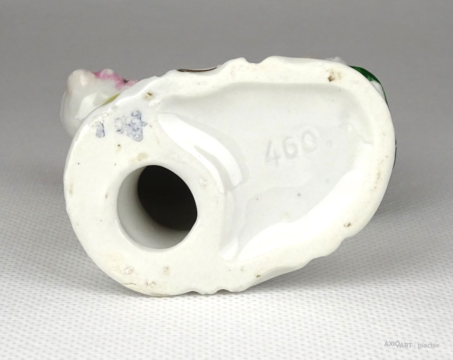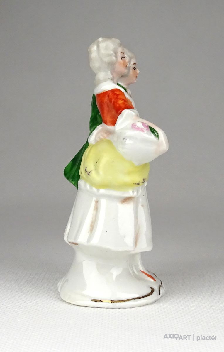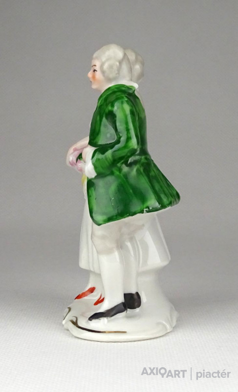 [1B356/X208] Régi kis méretű kétalakos barokk főúri páros porcelán szobor, talapzaton. Hibátlan állapotú jelzett darab. Alján kék koronás jelzés, lásd fotó. Formaszám: 460 Magasság: 10 cm Szélesség: 7 cm Súly: 0.11 kg