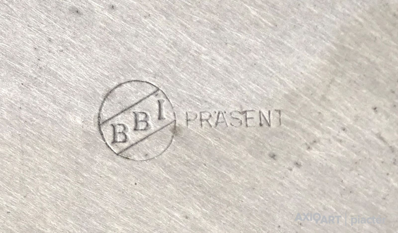 Régi jelzett ezüstözött fém BBI Prasent nyeles asztali hamutartó serpenyő 32 cm