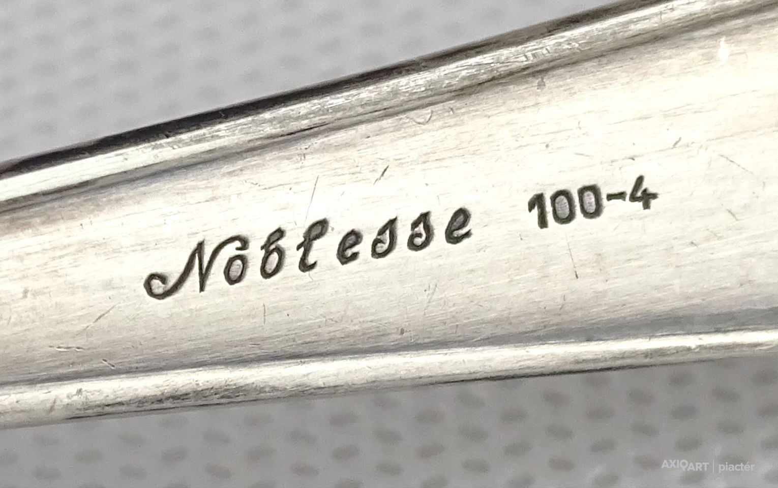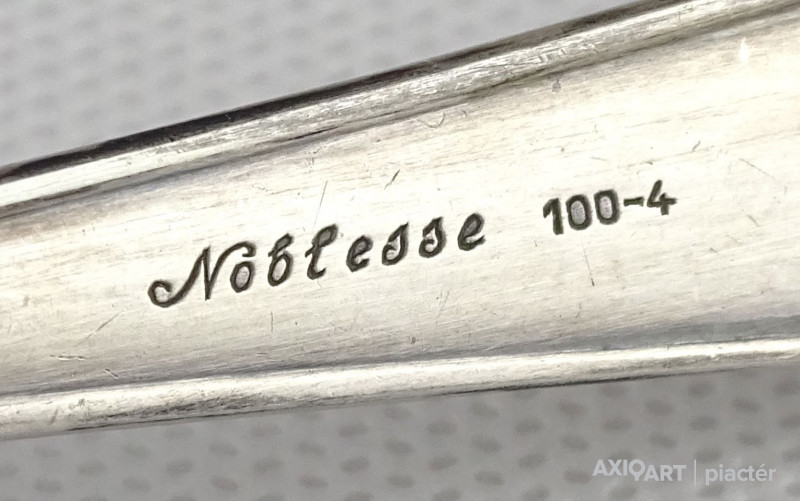 [1S337/IR] Régi, jelzett, szép állapotú ezüstözött alpakka tortás lapát, torta szedő az 1900-as évek elejéről. Rajta jelzés: NOBLESSE 100-4 Szélesség: 5.7 cm Hosszúság: 24.5 cm Súly: 0.075 kg