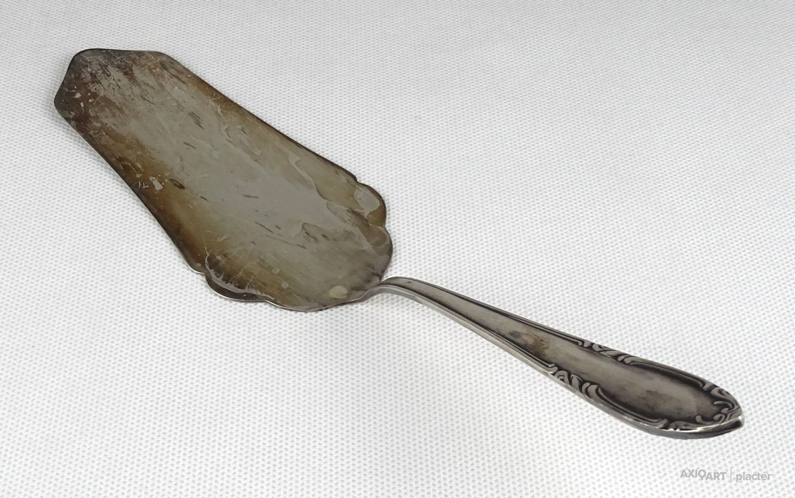 Régi, jelzett, szép állapotú ezüstözött alpakka tortás lapát, torta szedő az 1900-as évek elejéről.