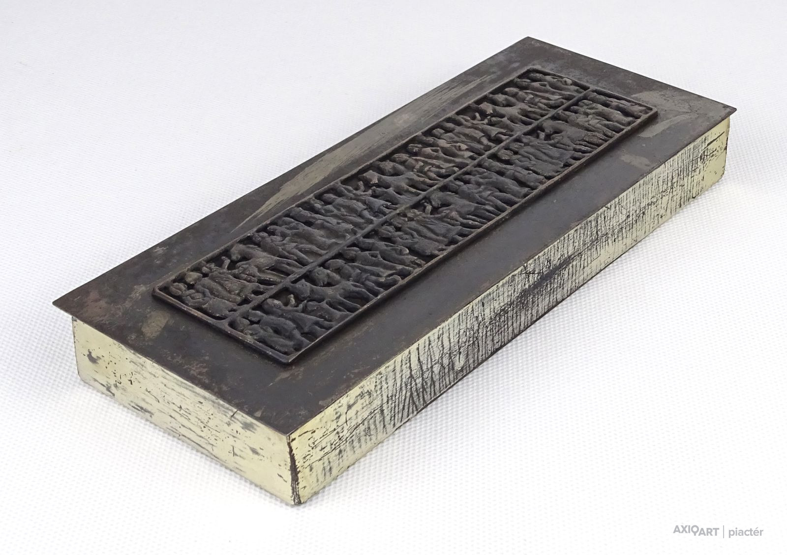 Régi jelzett fa betétes TEVAN MARGIT doboz 2.5 x 8 x 20 cm